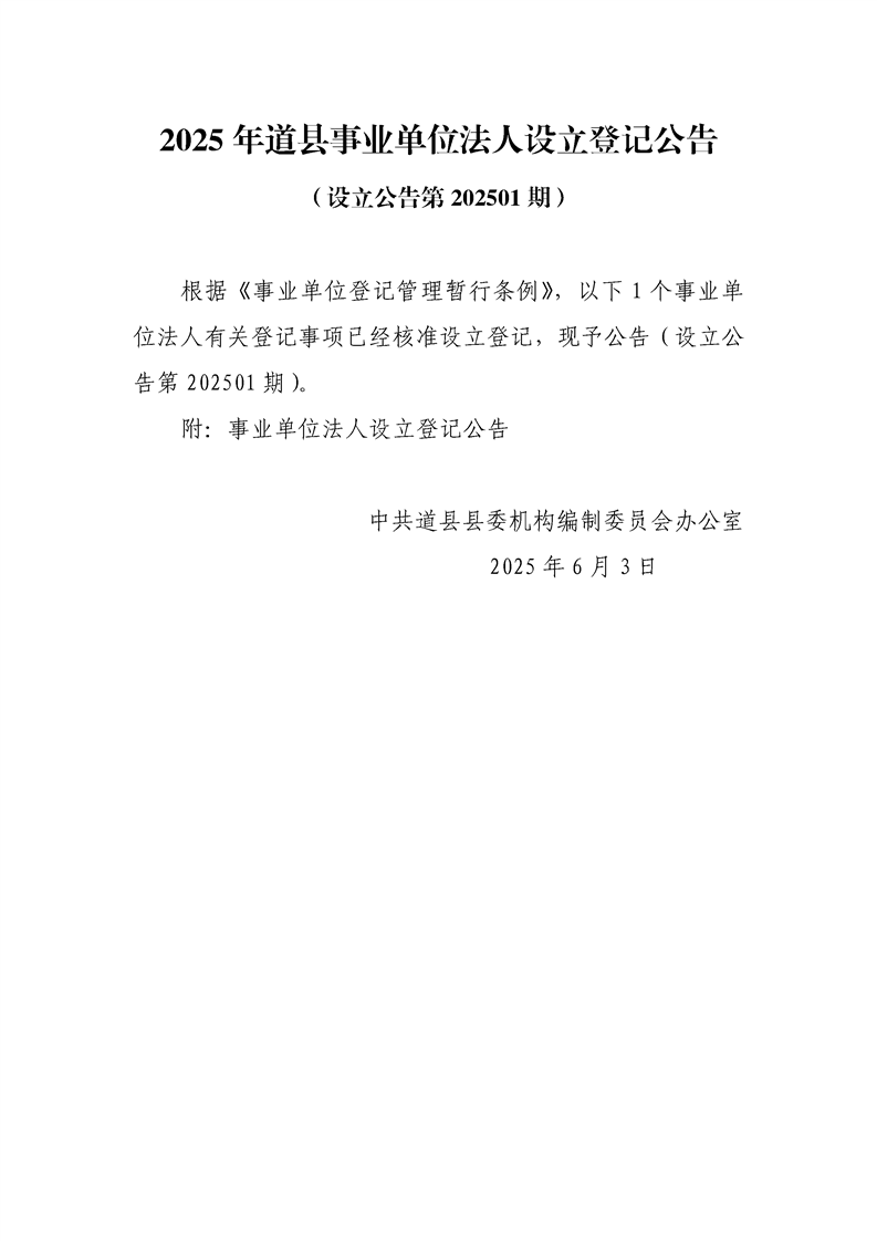 2025年道县事业单位法人设立登记公告(设立公告第202501期)
