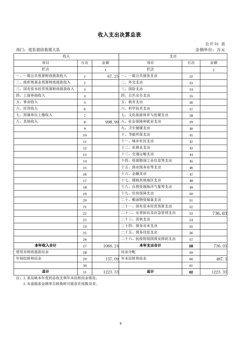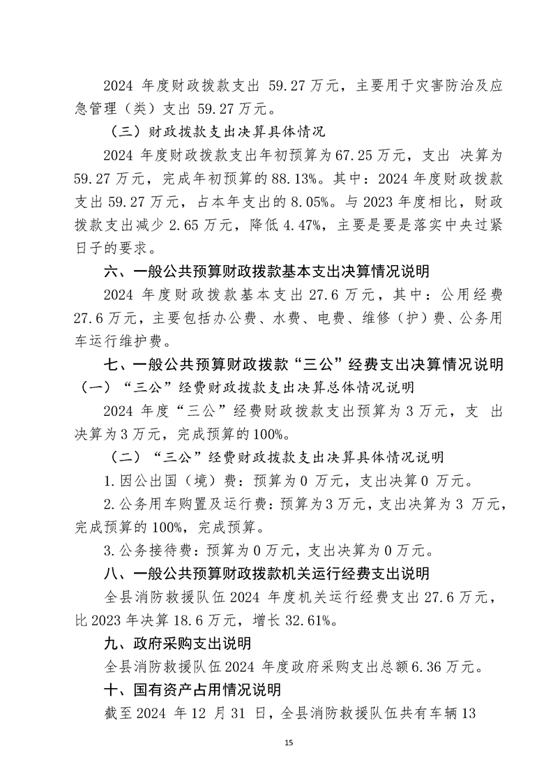 道县消防救援大队2024年度决算