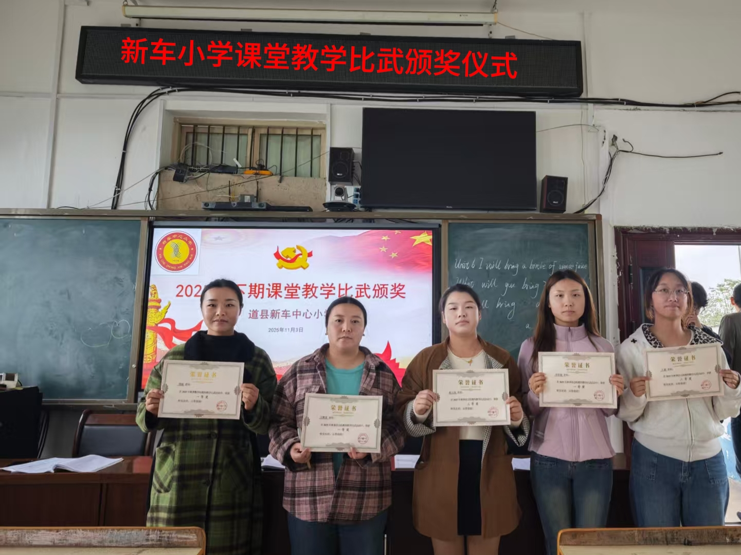 为进一步深化课堂教学改革,充分激发青年教师的教学热情,道县新车中心小学于2025年10月28日至31日成功举办了教师课堂教学大比武活动。语文、数学、英语三科的青年教师汇聚一堂,在同一平台展开竞技,共同呈现了一场精彩纷呈的教学盛宴,并于11月3日举行颁奖仪式,激励教师积极提升教研能力。