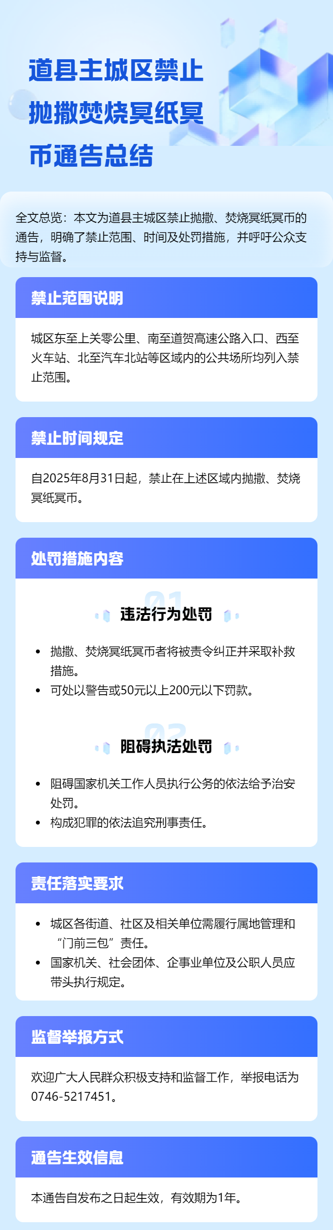 图解 | 道县主城区禁止抛撒 、焚烧冥纸冥币的通告