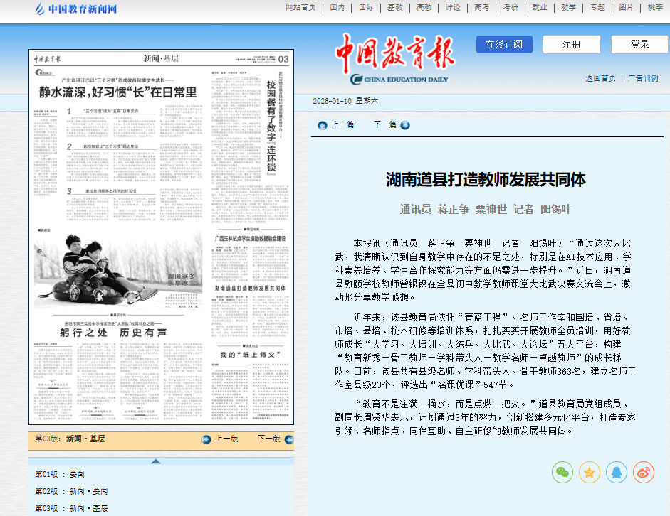 【中国教育报】湖南道县打造教师发展共同体