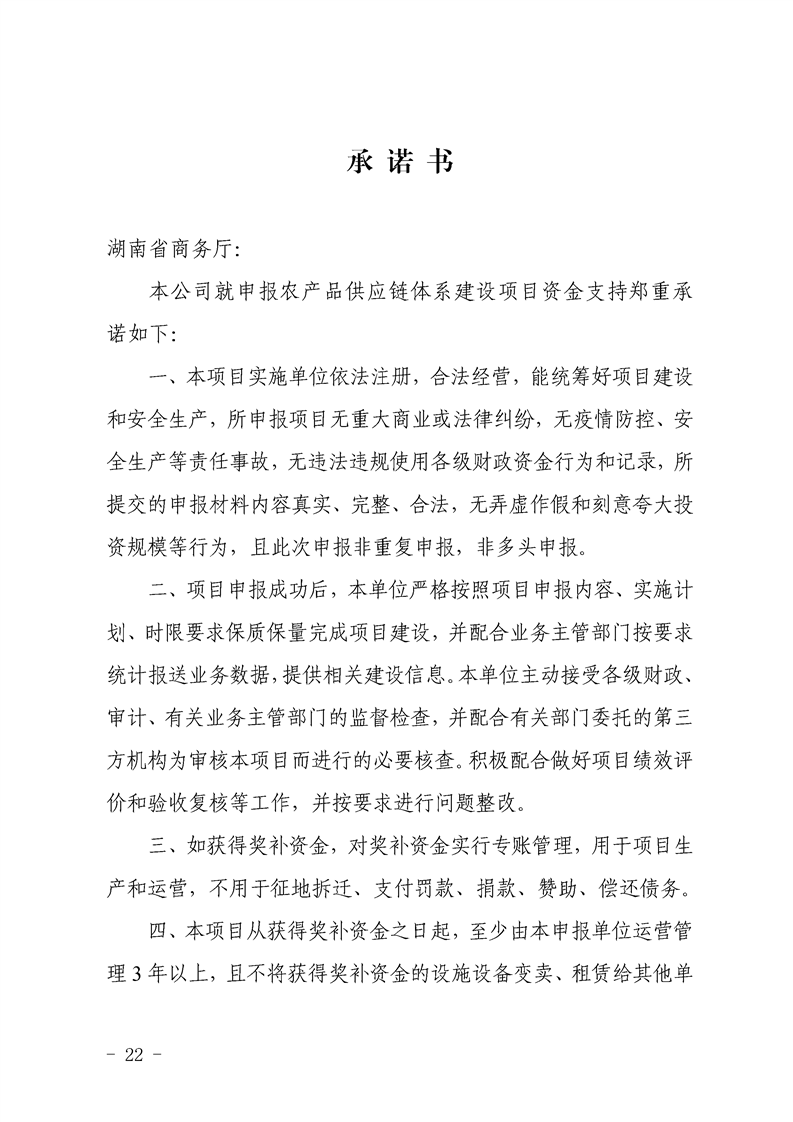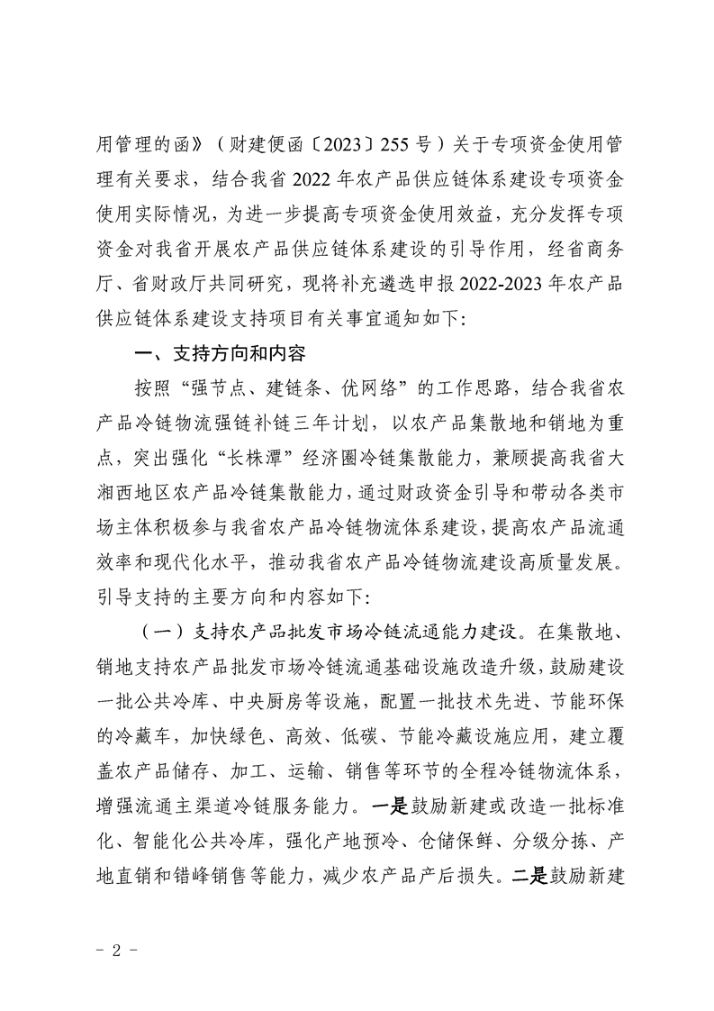 湖南省商务厅 湖南省财政厅关于补充遴选申报2022-2023年农产品供应链体系建设支持项目的通知
