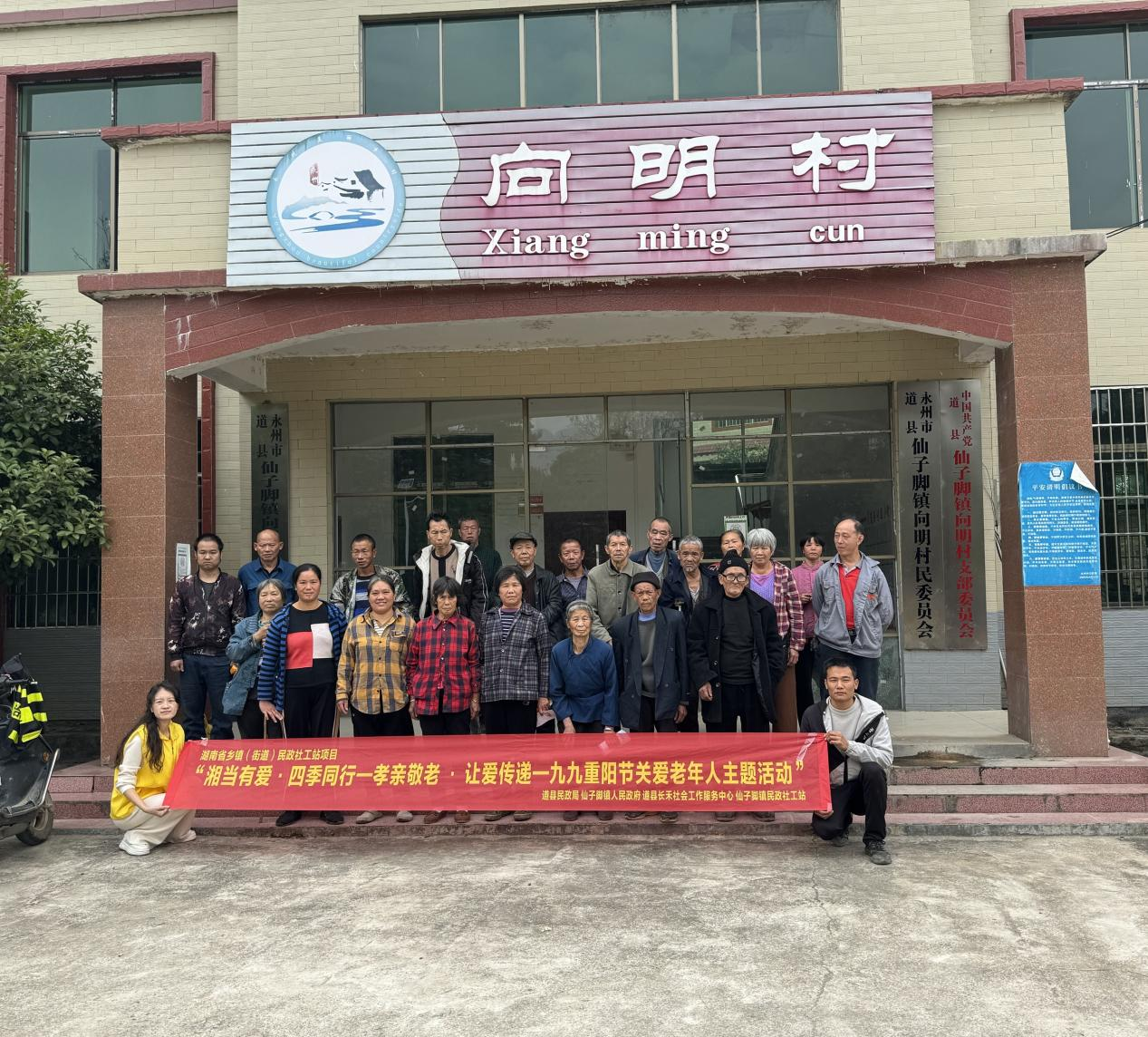 为弘扬中华民族尊老、敬老、爱老、助老的传统美德,10月29日,在道县民政局的指导下,道县长禾社会工作服务中心携手仙子脚镇人民政府、民政社工站,走进仙子脚镇向明村,联合开展了“湘当有爱·四季同行——孝亲敬老·让爱传递”九九重阳节关爱老年人主题活动,为辖区老人送去节日的温暖与关怀。