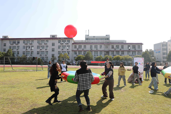 活动设置了“摸石头过河”、“快乐向前冲”、“筷子夹球”等趣味项目,女教职工们参与热情高涨,纷纷协作配合、组队比拼,活动现场气氛活跃、热闹非凡。女教职工们在活动中尽情投入,展现了工作之外活泼热情、团结互助的精神面貌。