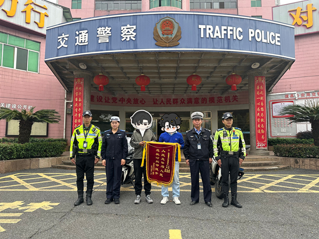 11月17日,道县寿雁镇蒋先生将一面写着“人民交警为人民 危机时刻伸援手”的锦旗送到道县公安局交警大队铁骑中队民警手上,以表达对交警心系人民、为民解难之情。
