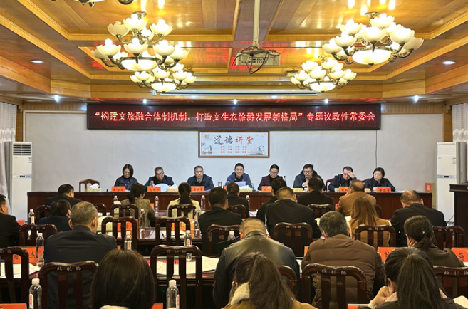 12月9日,道县政协2025年专题议政性常委会召开,聚焦“构建文旅融合体制机制,打造文生农旅游发展新格局”开展专题议政。县委副书记、县长刘华中到会听取意见建议并讲话。县政协党组书记、主席刘忠华主持,县委常委、宣传部部长唐华豪,副县长何小白受邀出席,县政协副主席毛长江、陈林静、朱渝娟、黄芬芳出席。