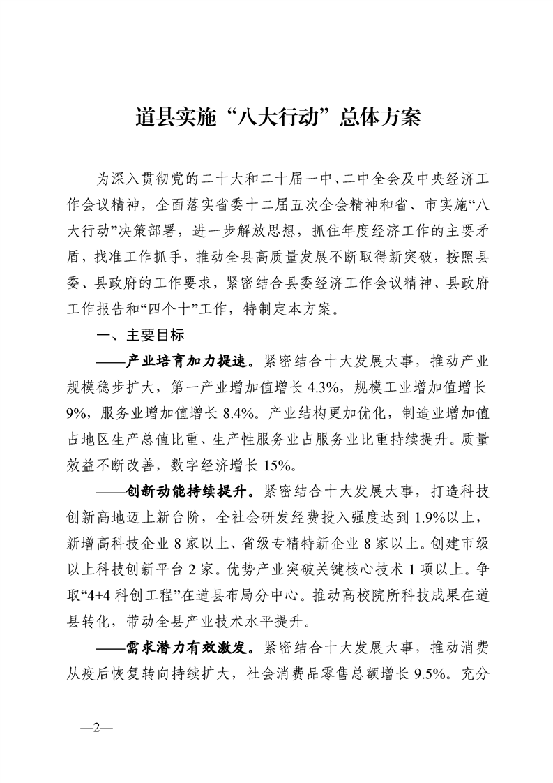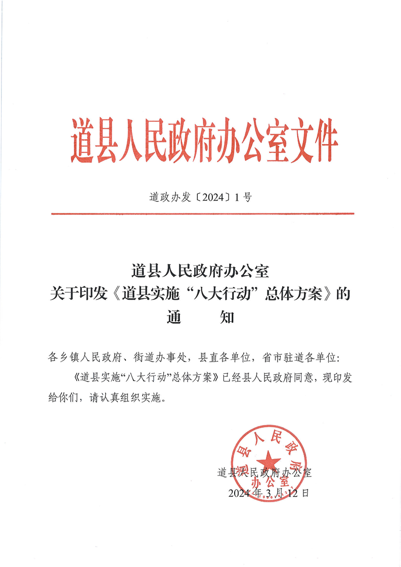 关于印发《道县实施“八大行动”总体方案》的通知(政策文件)