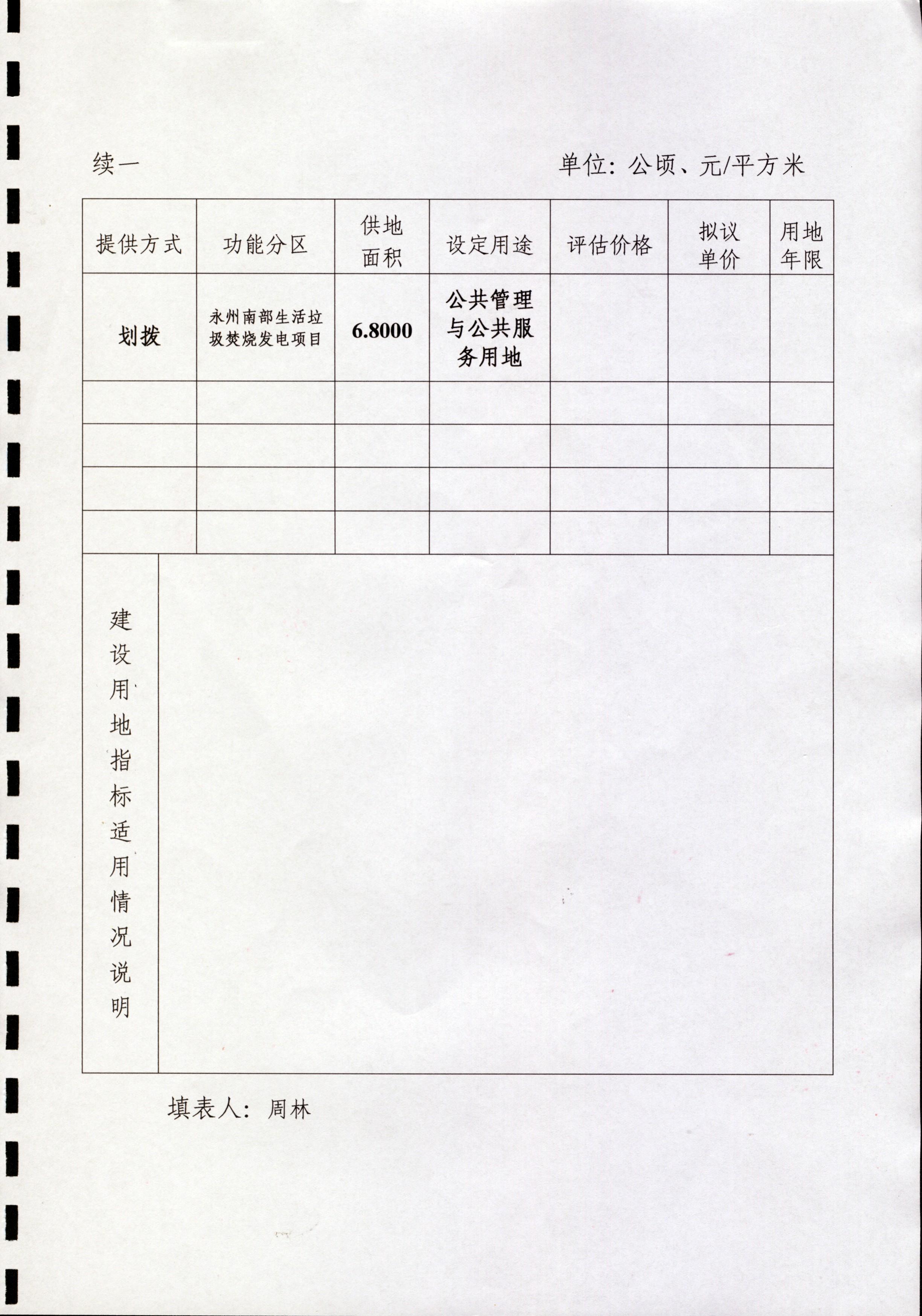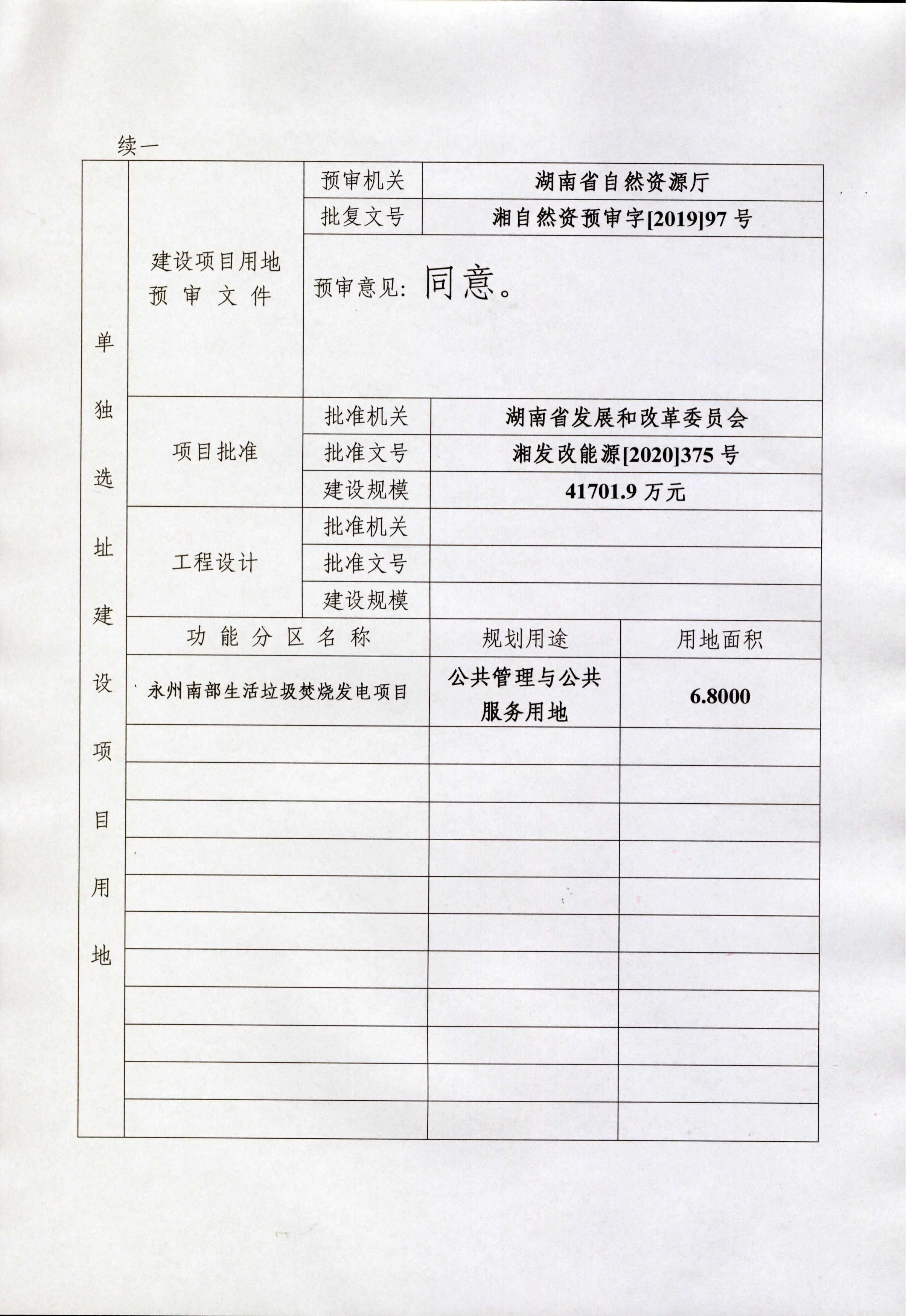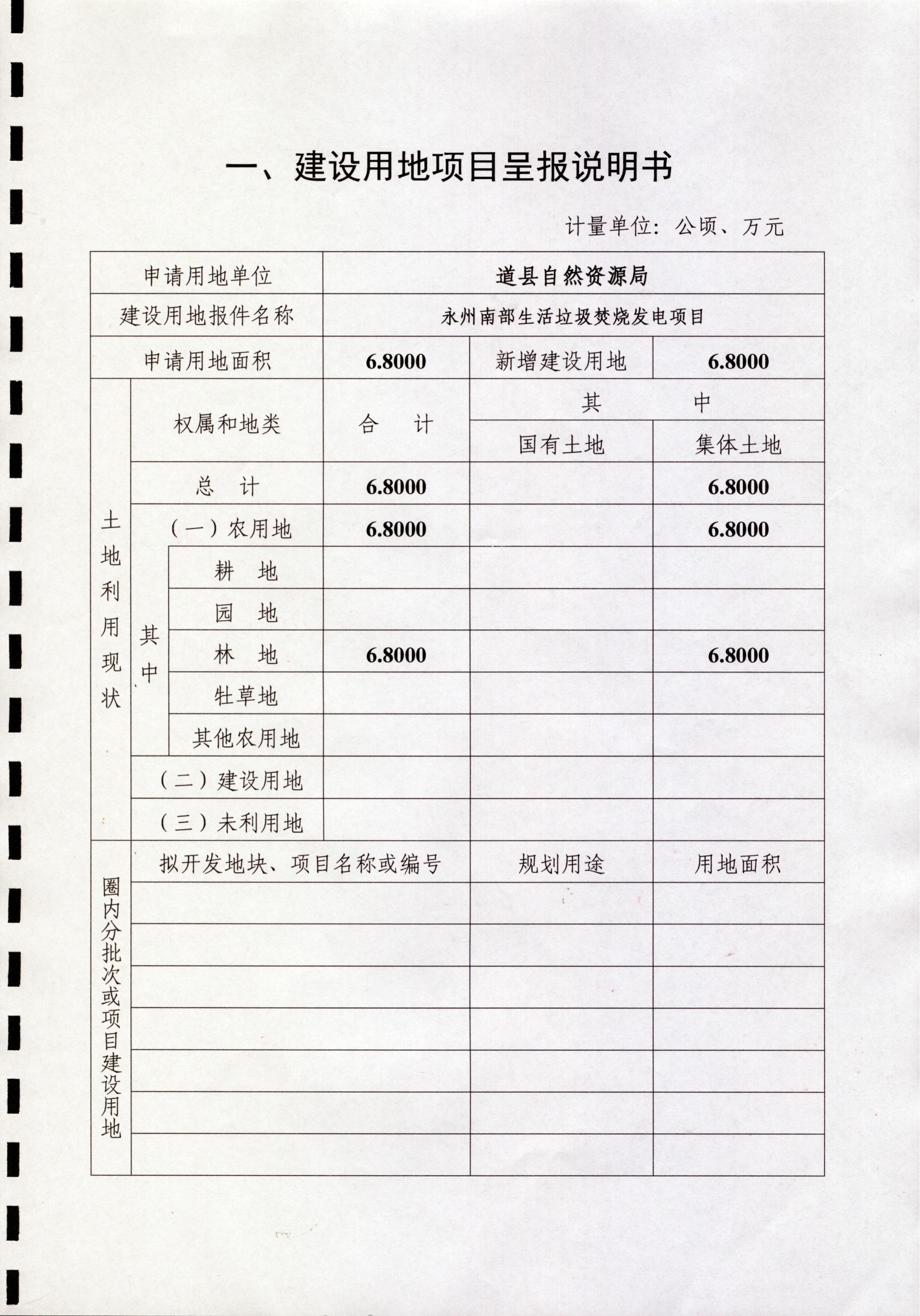 建设用地呈报说明书、农用地转用方案、补充耕地方案、征收土地方案、供地方案(永州南部生活垃圾焚烧发电项目)