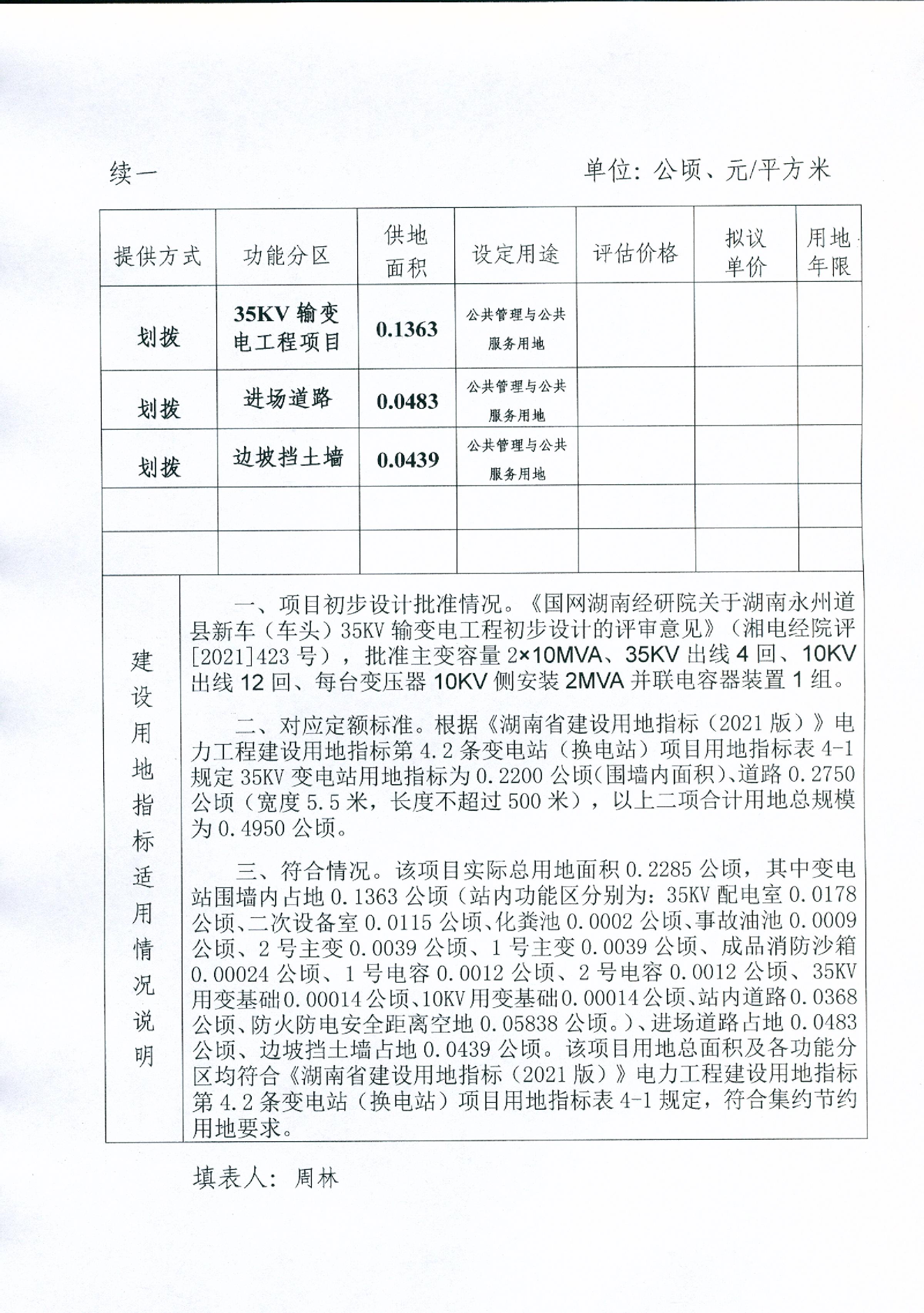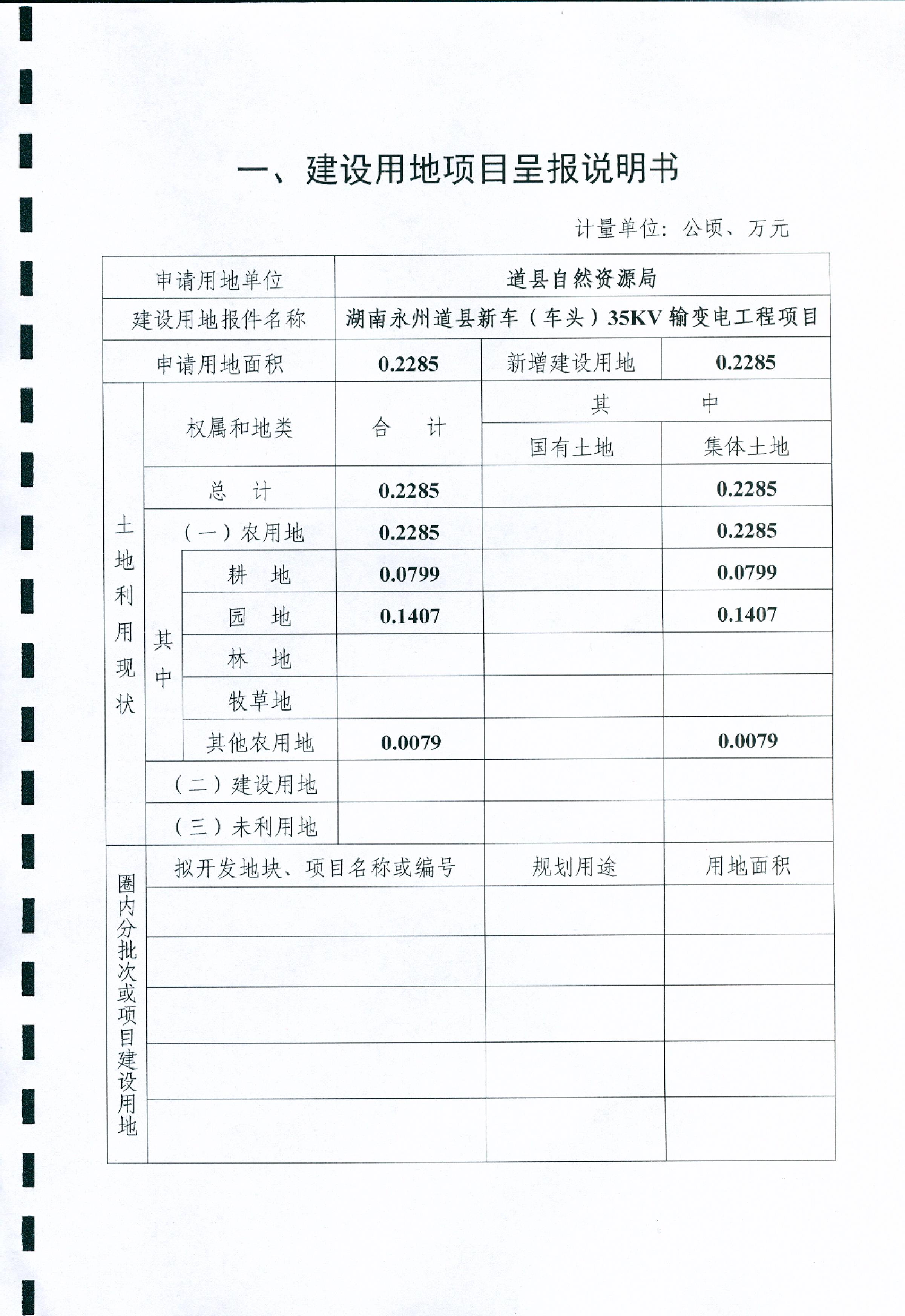 湖南永州道县新车(车头)35KV输变电工程项目“一书四方案”