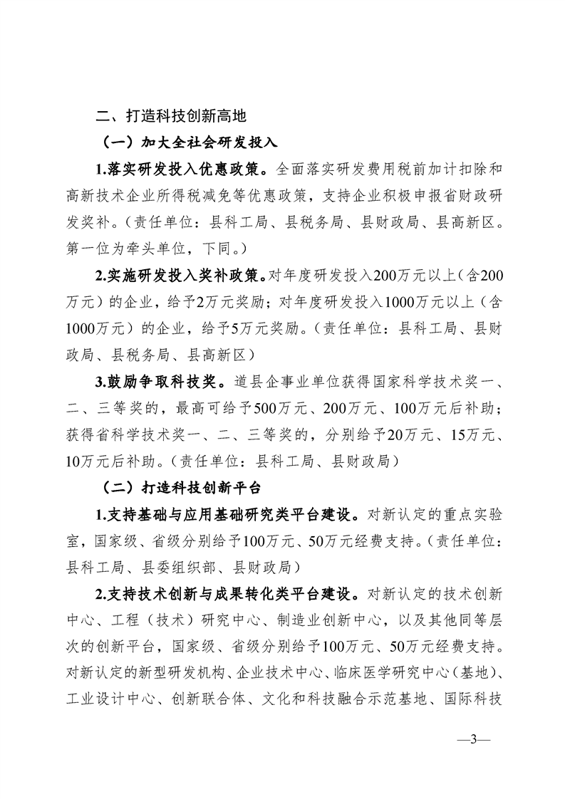 图解 | 道县促进科技创新和工业经济高质量发展若干措施