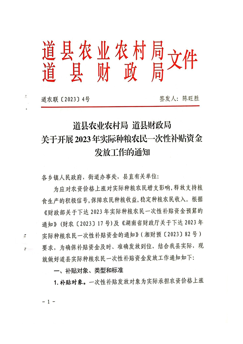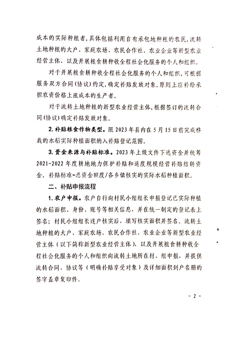 关于开展2023年实际种粮农民一次性补贴资金发放工作的通知