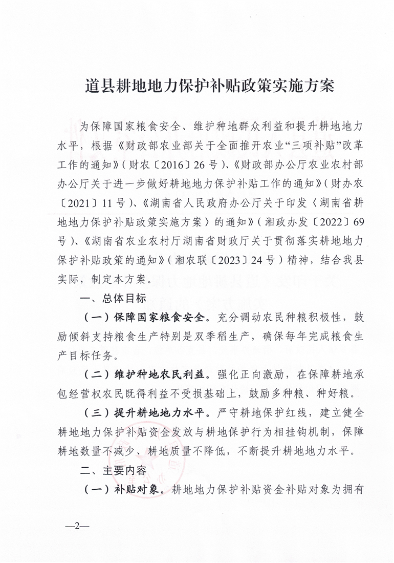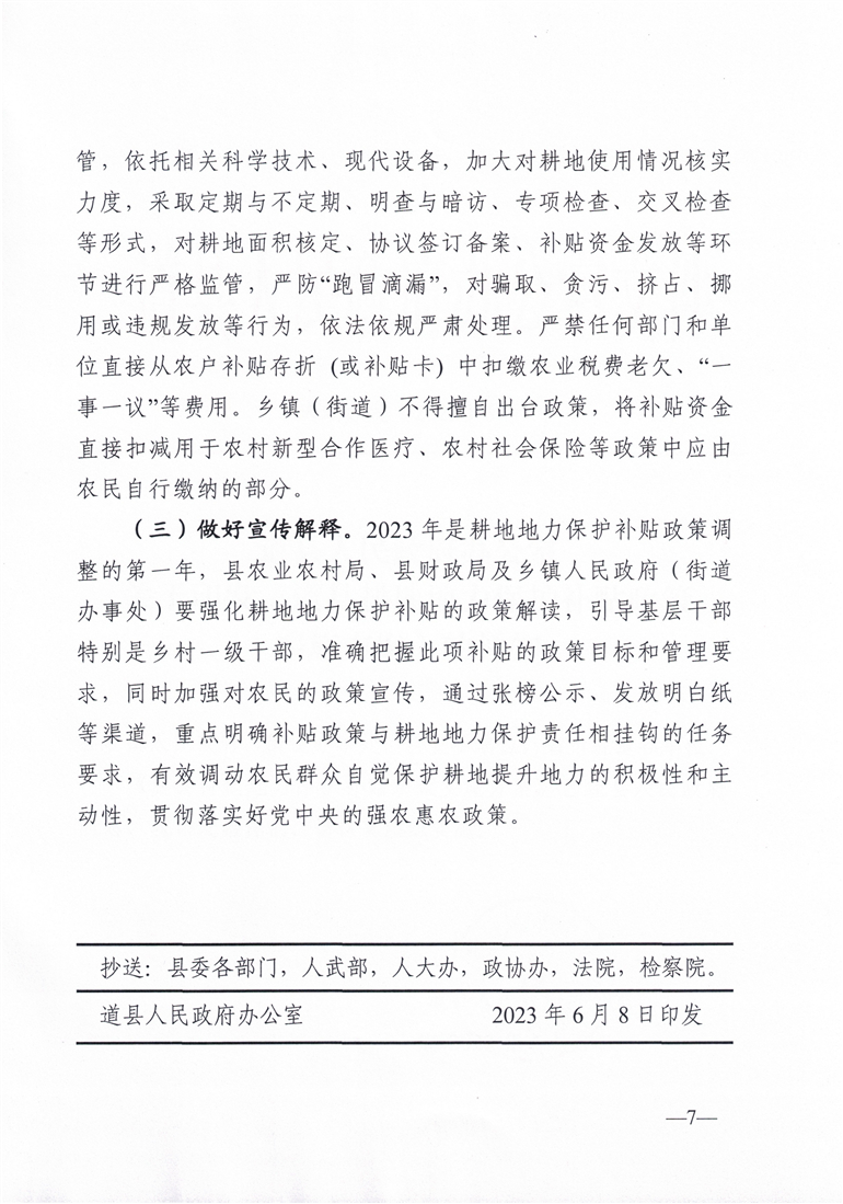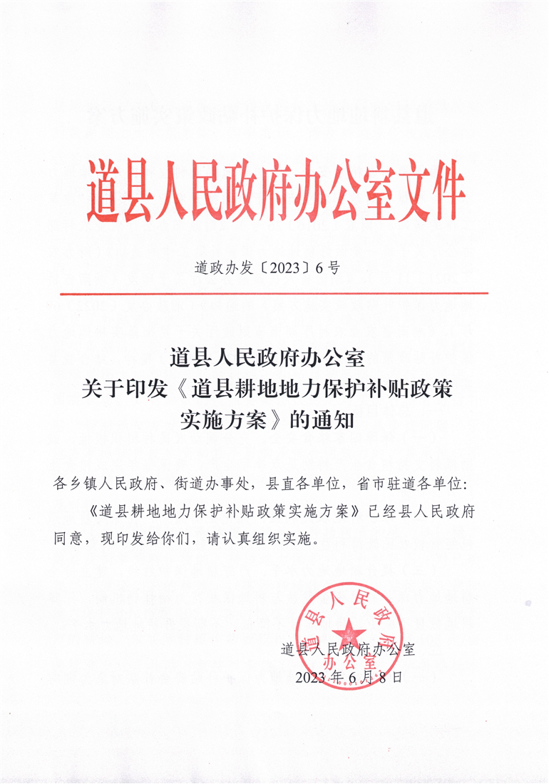 道县人民政府办公室关于印发《道县耕地地力保护补贴政策实施方案》的通知