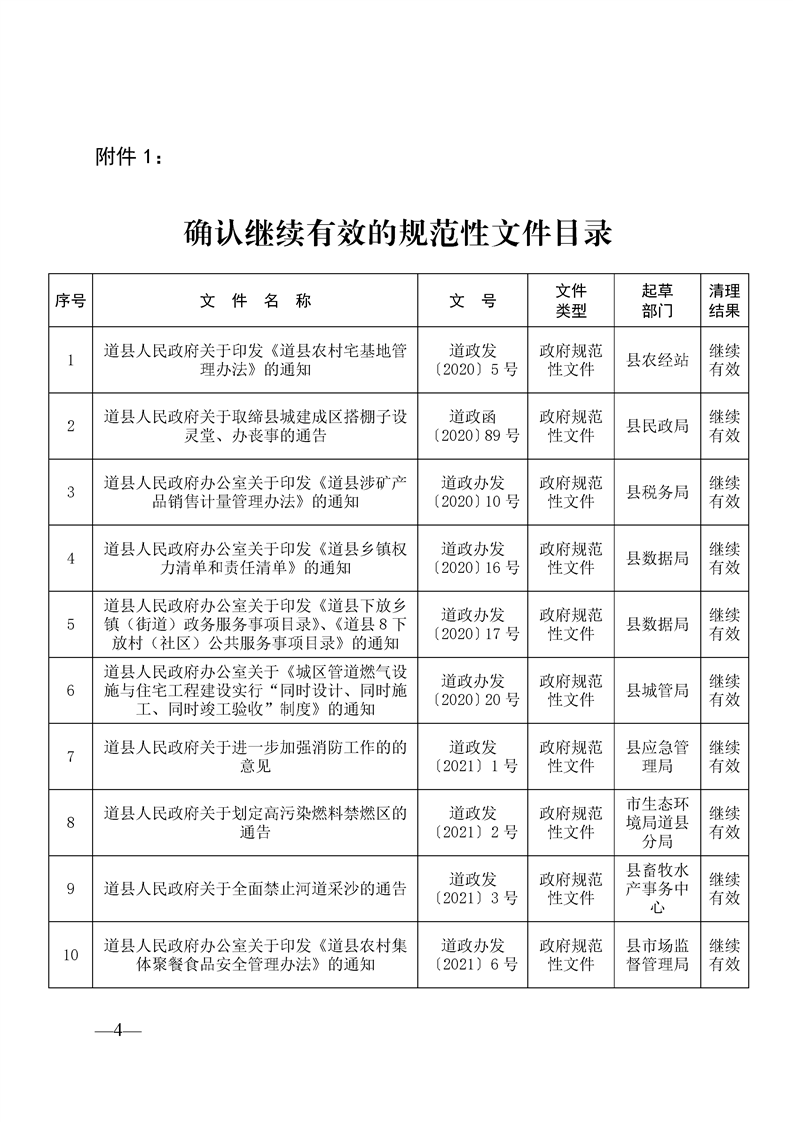 道县人民政府关于公布2025年规范性文件清理结果的决定
