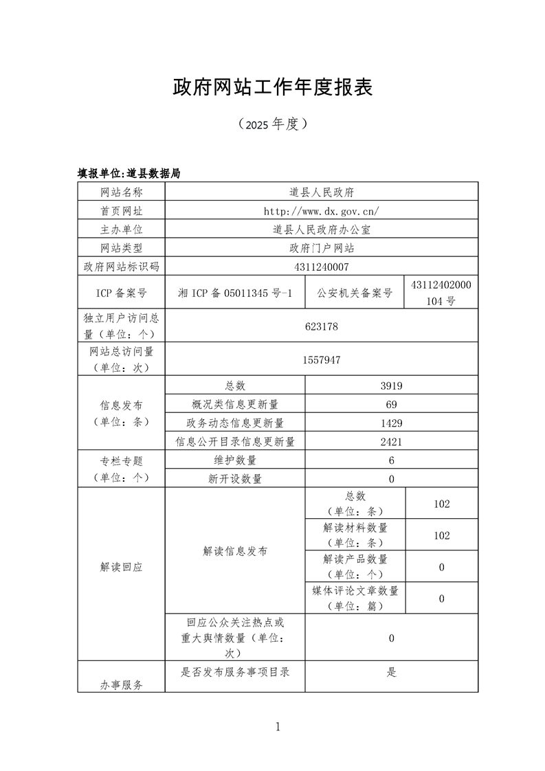2025年道县政府网站工作年度报表