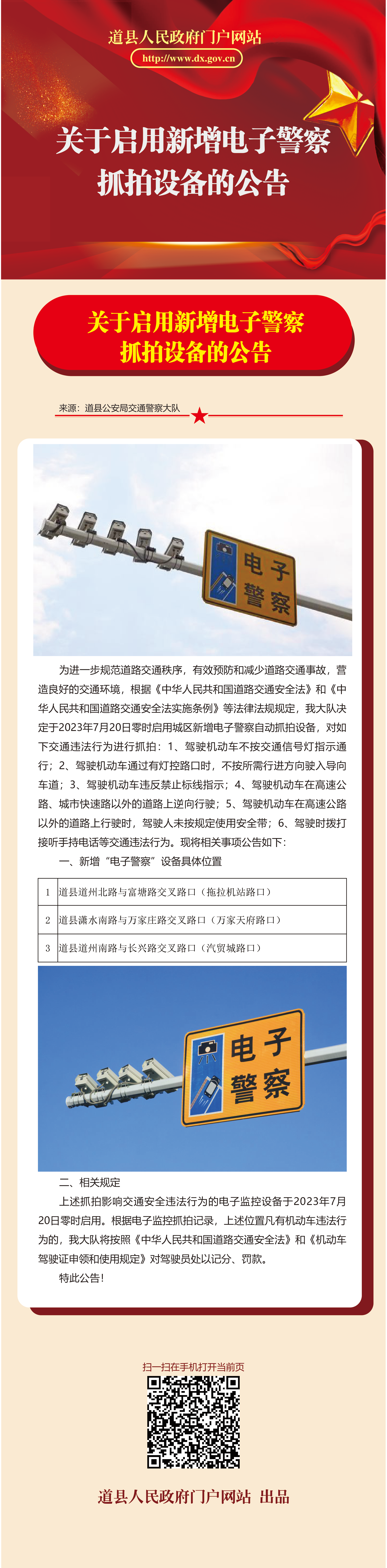 道县公安局交警大队关于《关于启用新增电子警察抓拍设备的公告》的政策解读