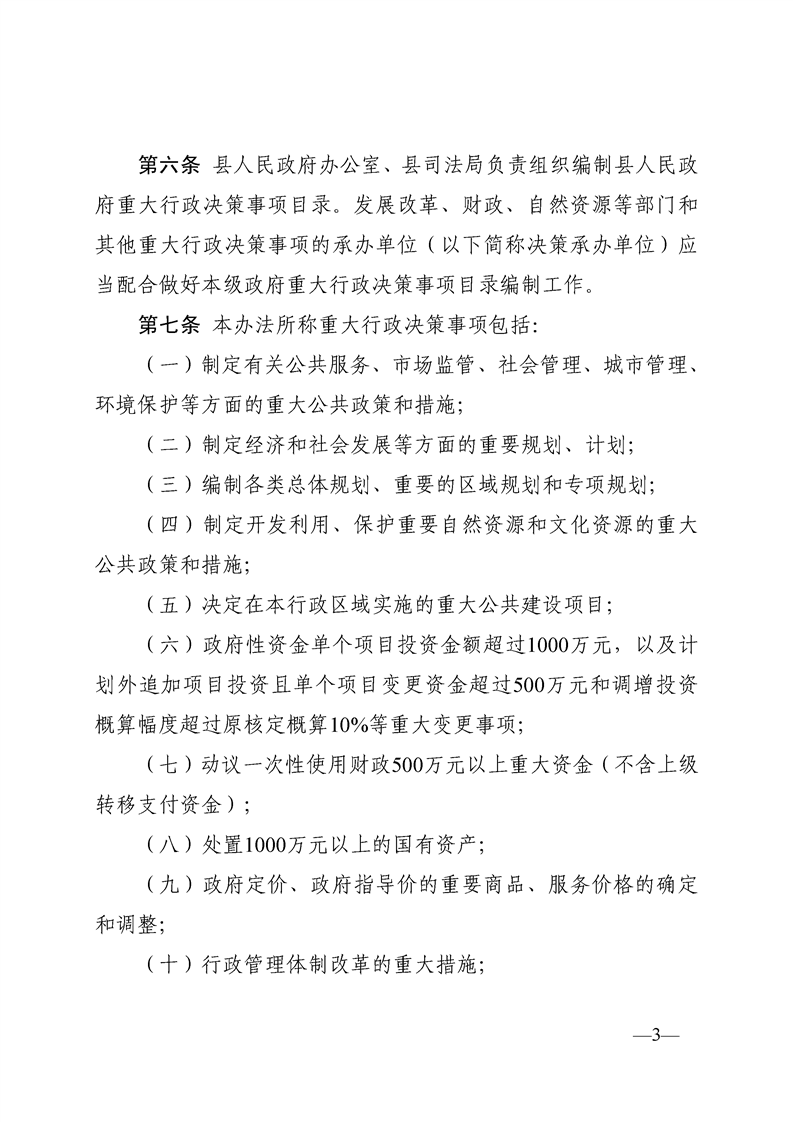 关于印发《道县人民政府重大行政决策事项目录管理实施办法》的通知