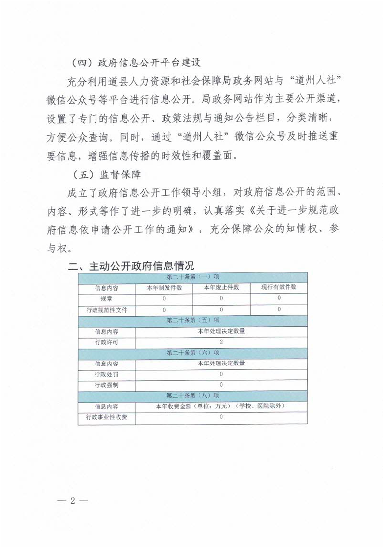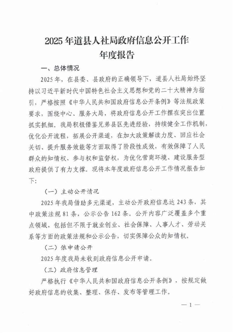 2025年道县人社局政府信息公开工作年度报告