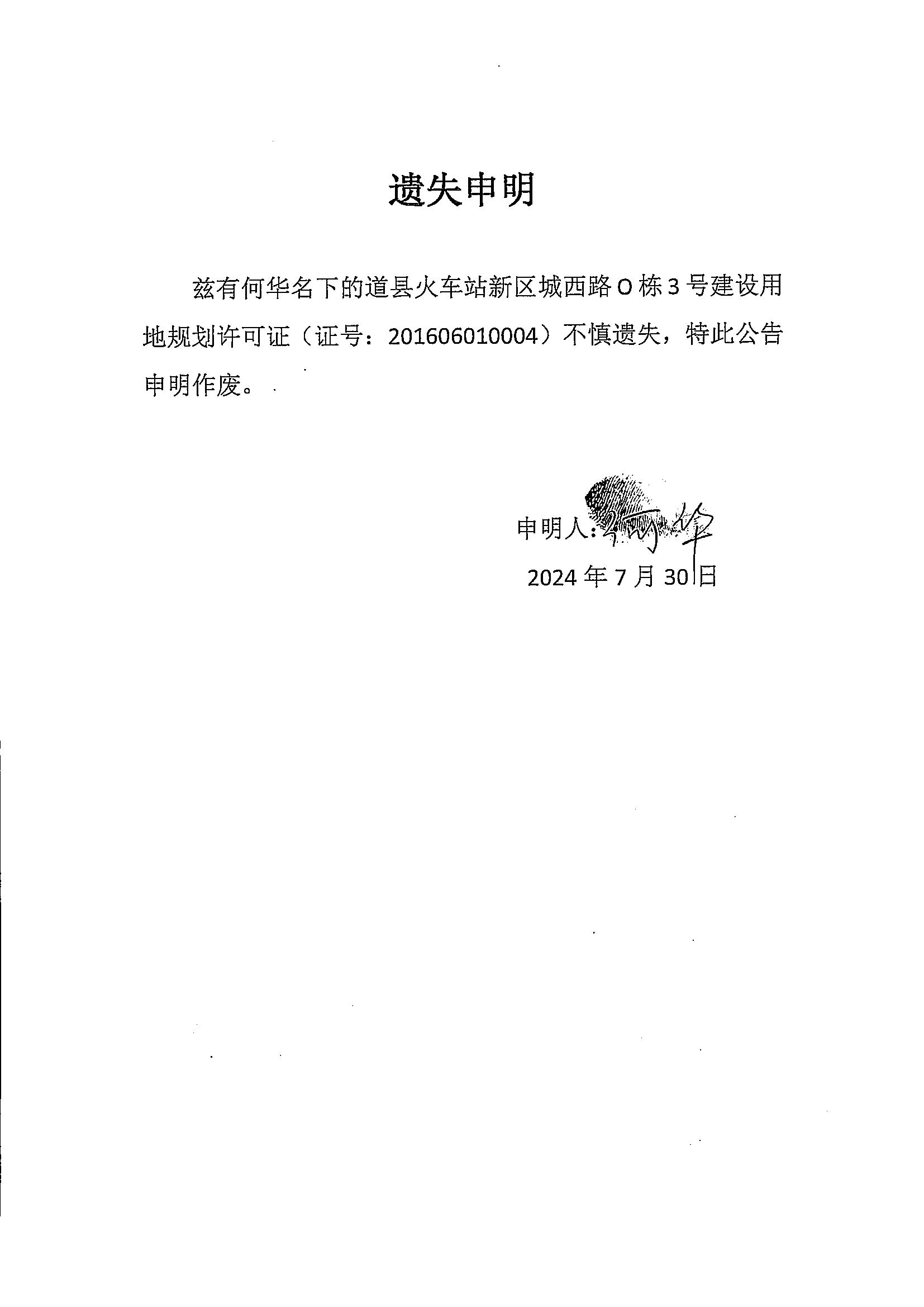 遗失声明(何华)