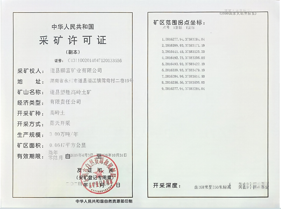 道县自然资源局关于道县鹏富矿业有限公司采矿许可证的公示