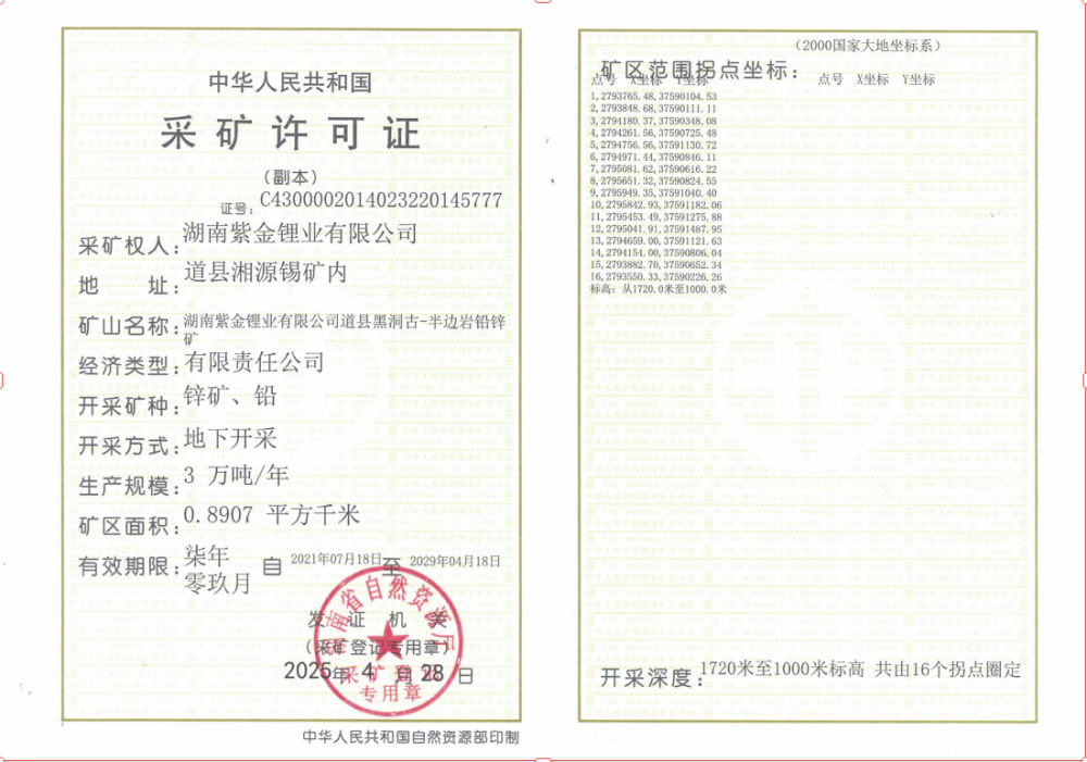 道县自然资源局关于湖南紫金锂业有限公司采矿许可证的公示