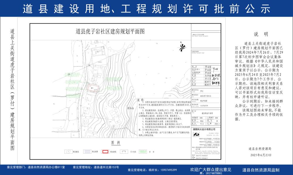 道县上关街道虎子岩社区(罗付)建房规划平面图批前公示
