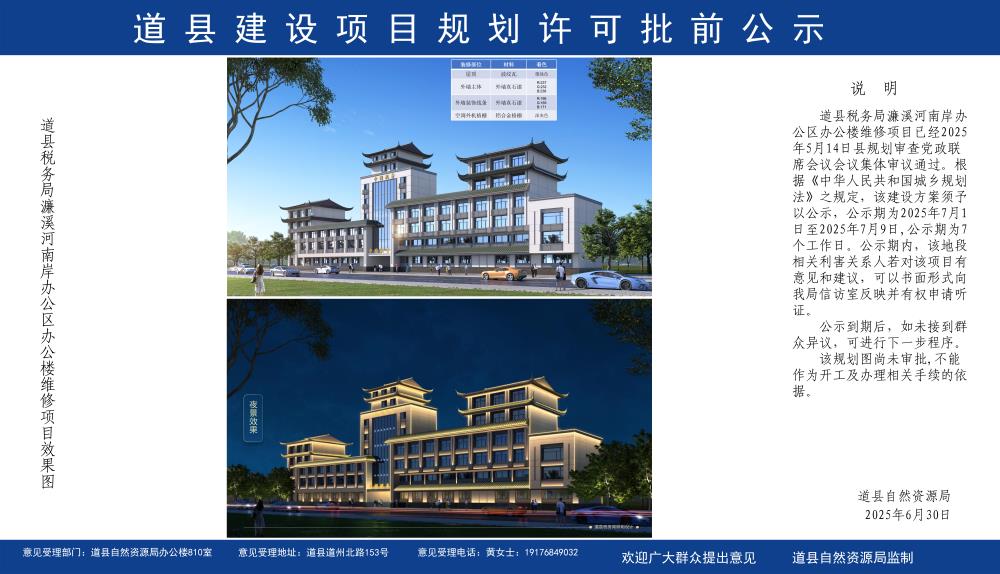 道县税务局濂溪河南岸办公区办公楼维修项目效果图批前公示