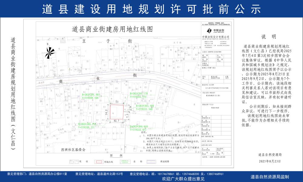 道县商业街建房规划用地红线图批前公示(文仁昌)