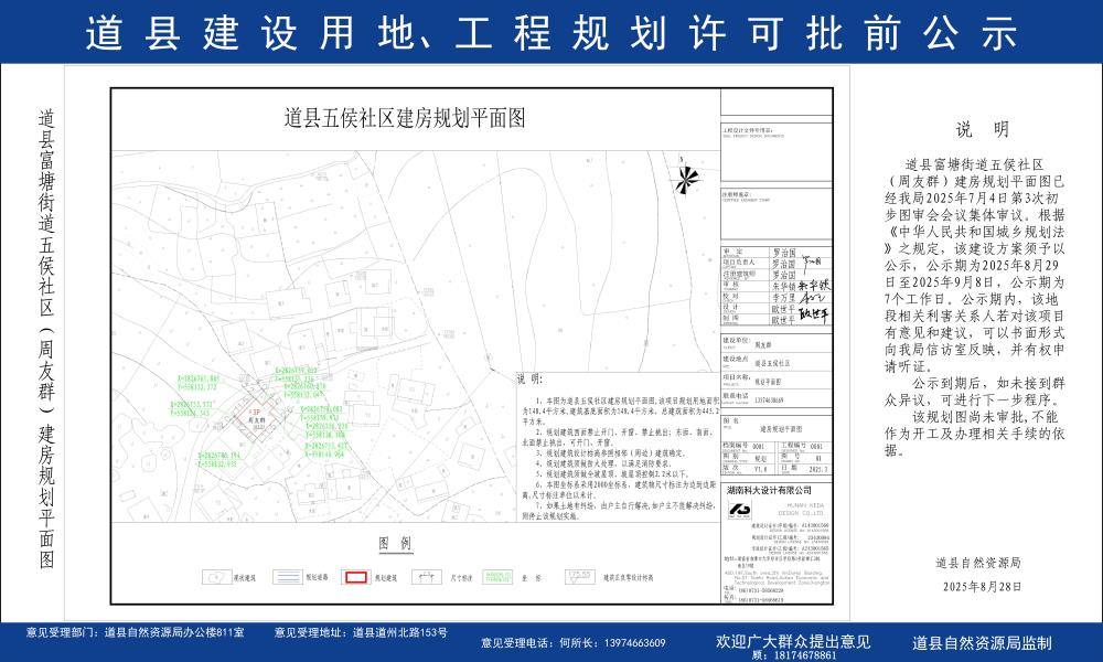 道县富塘街道私人建房规划平面图批前公示(周友群)