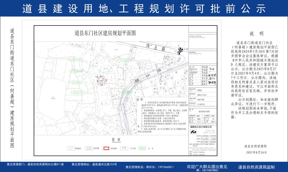 道县东门街道东门社区建房规划平面图批前公示(何善超)