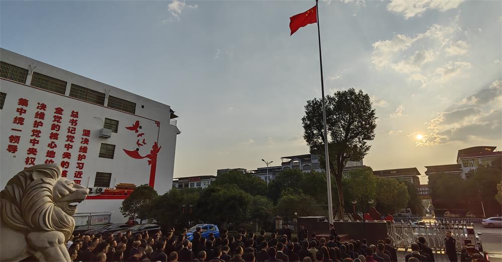 上午8时00分,升旗仪式正式开始。迎着初升的朝阳,3名护旗手迈着铿锵有力的步伐,护送国旗走向升旗台。伴随着庄严的国歌,鲜艳的五星红旗冉冉升起,迎风招展。参加仪式的全体干部职工精神抖擞、庄严肃立,向国旗致敬,祝福祖国繁荣昌盛,祝愿自然资源事业蒸蒸日上。