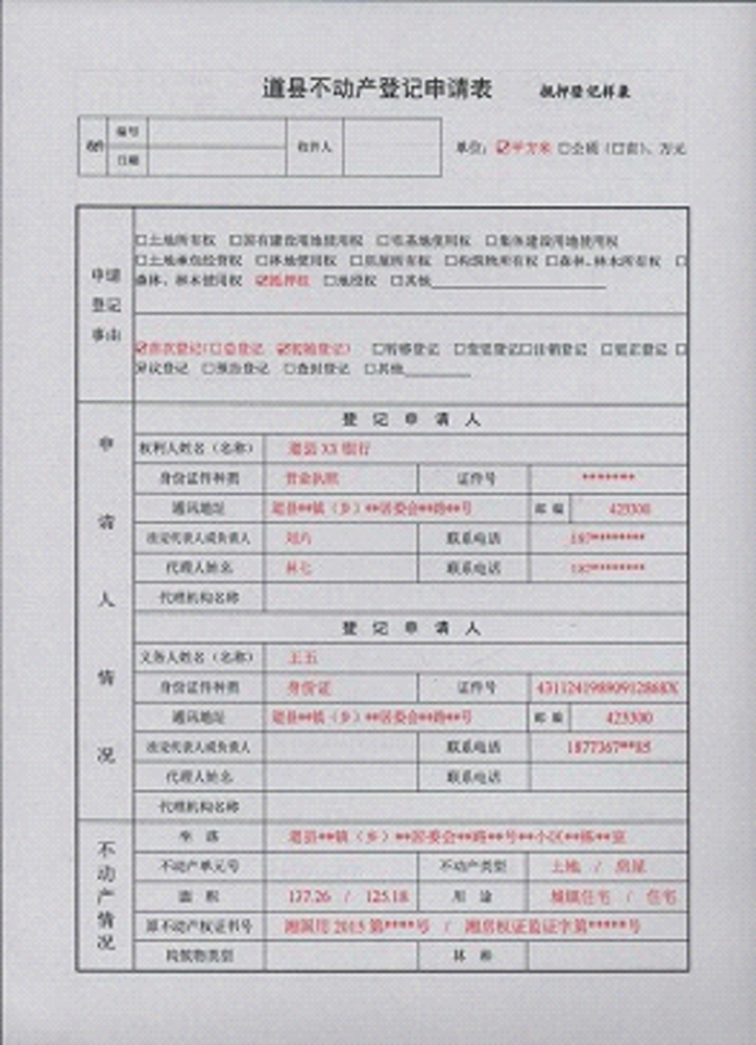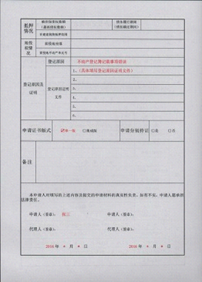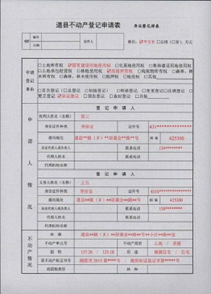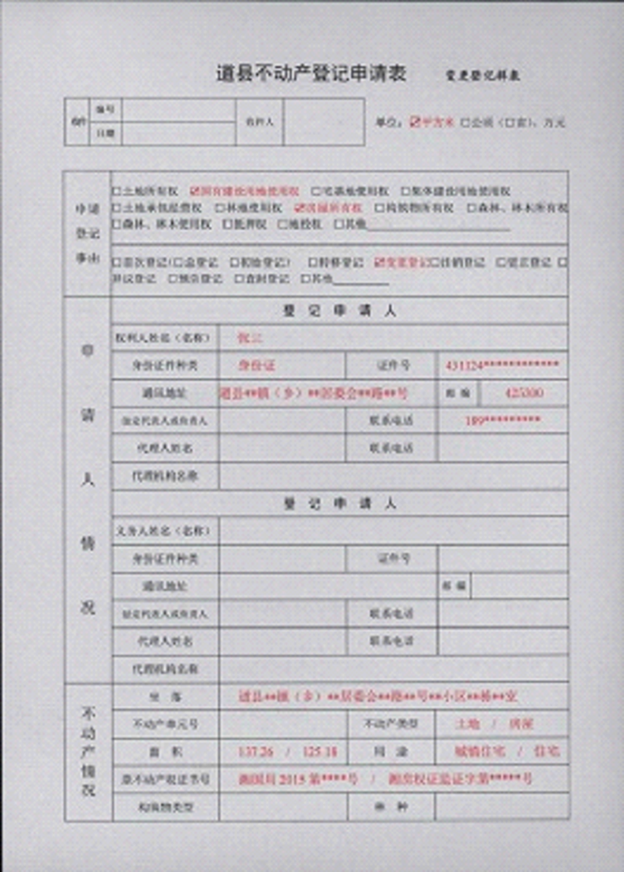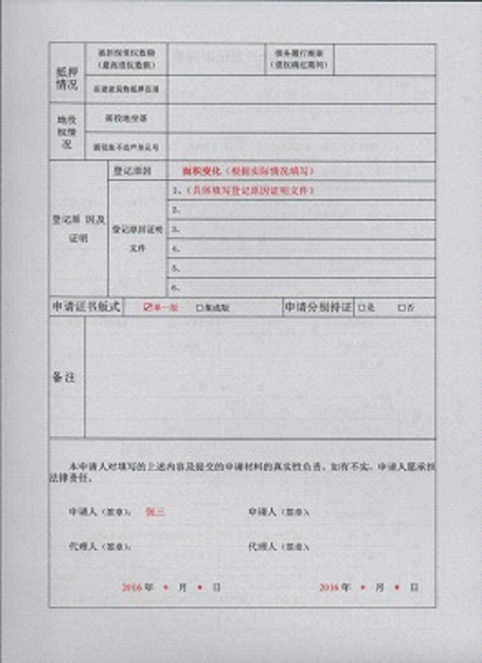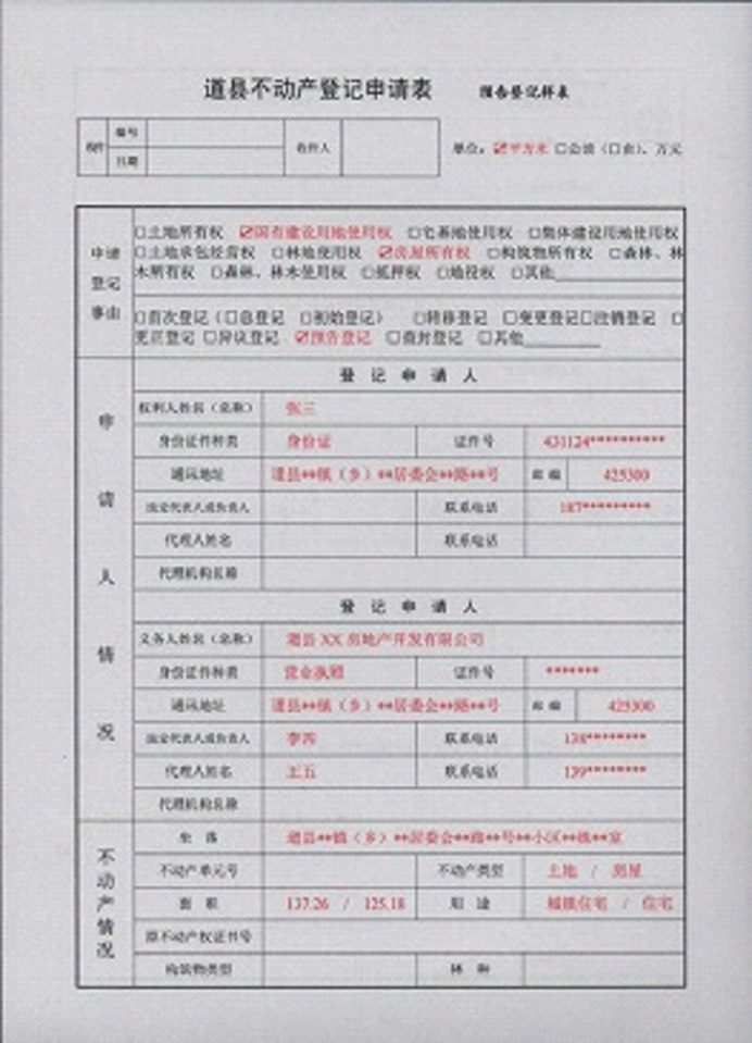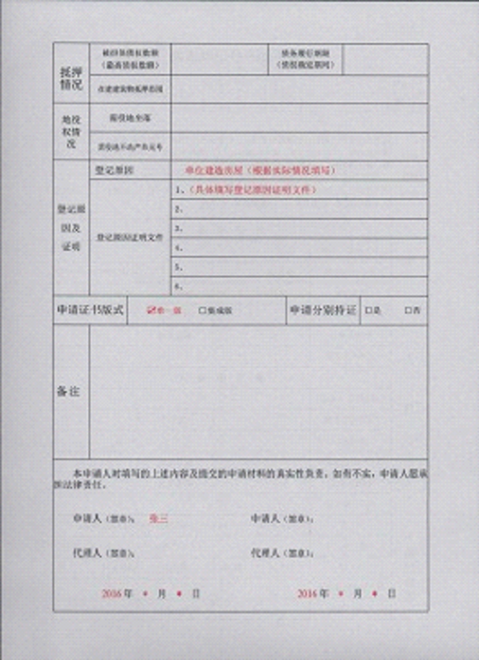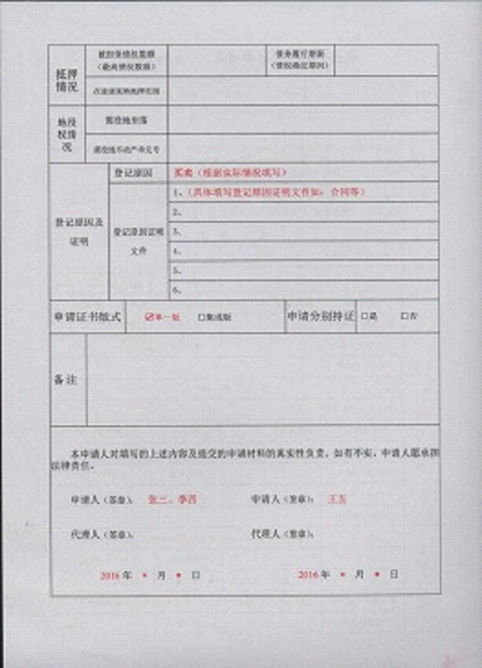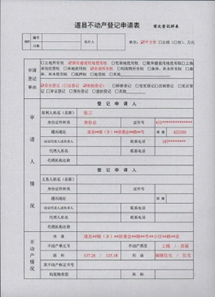 不动产登记申请书示范文本