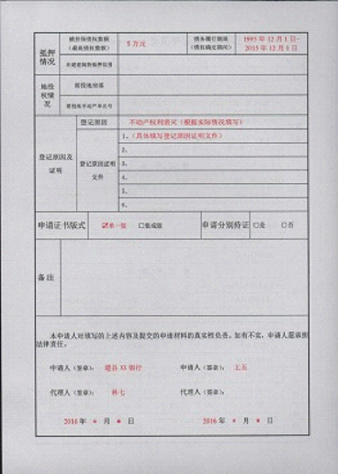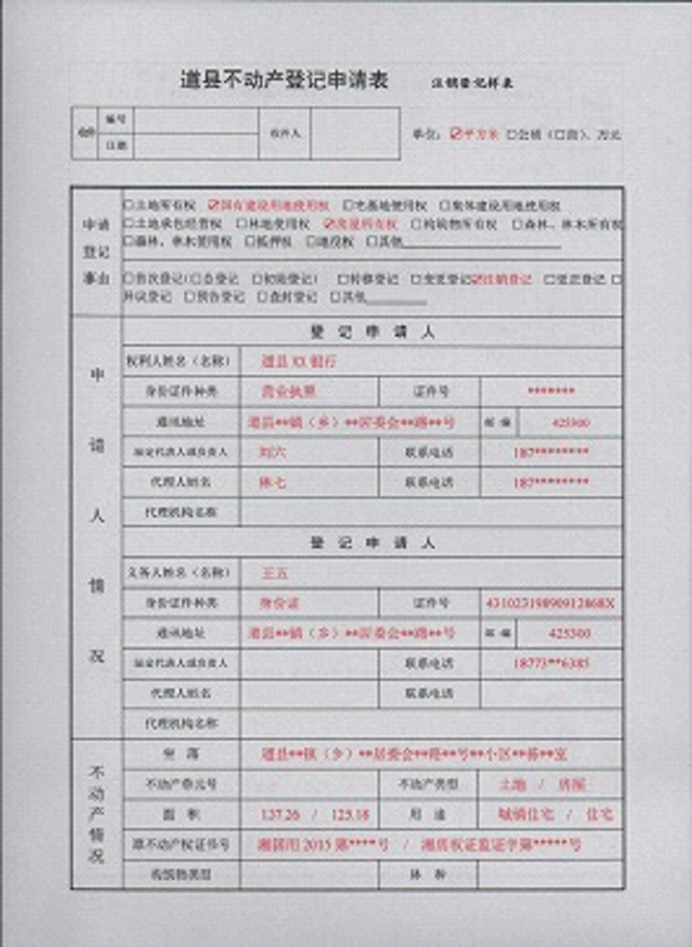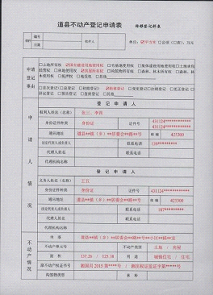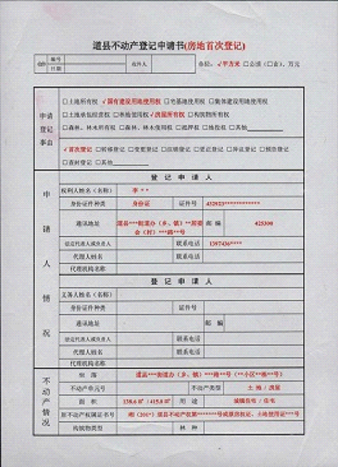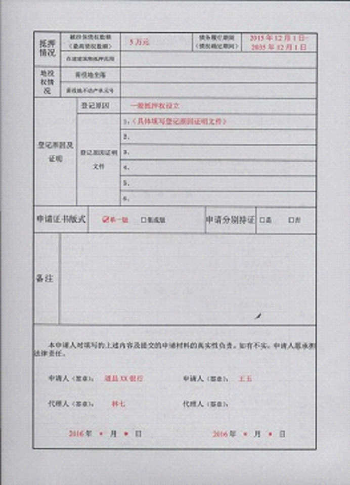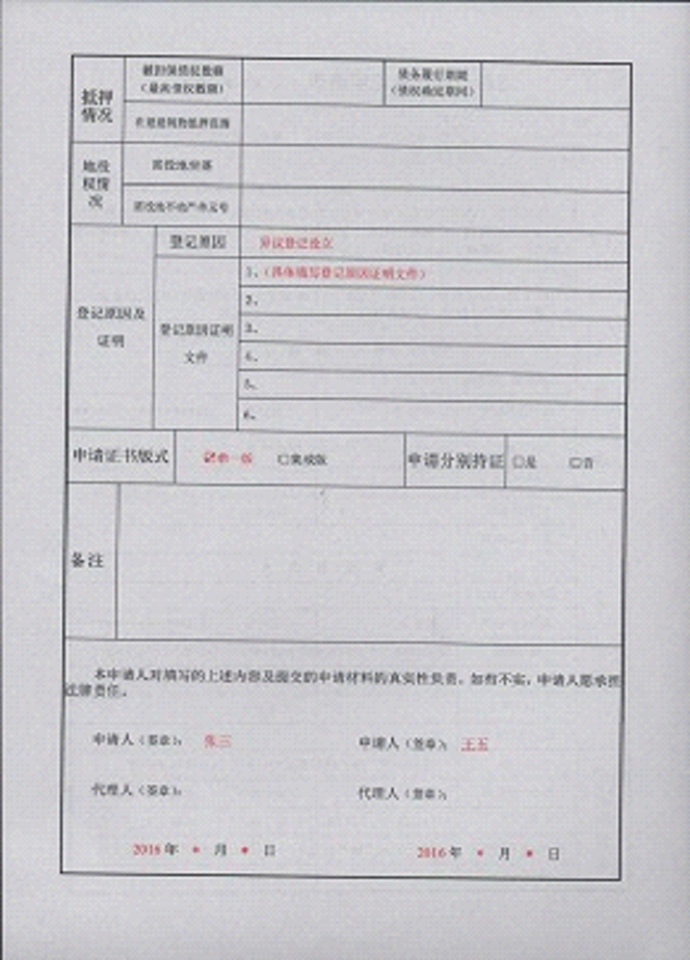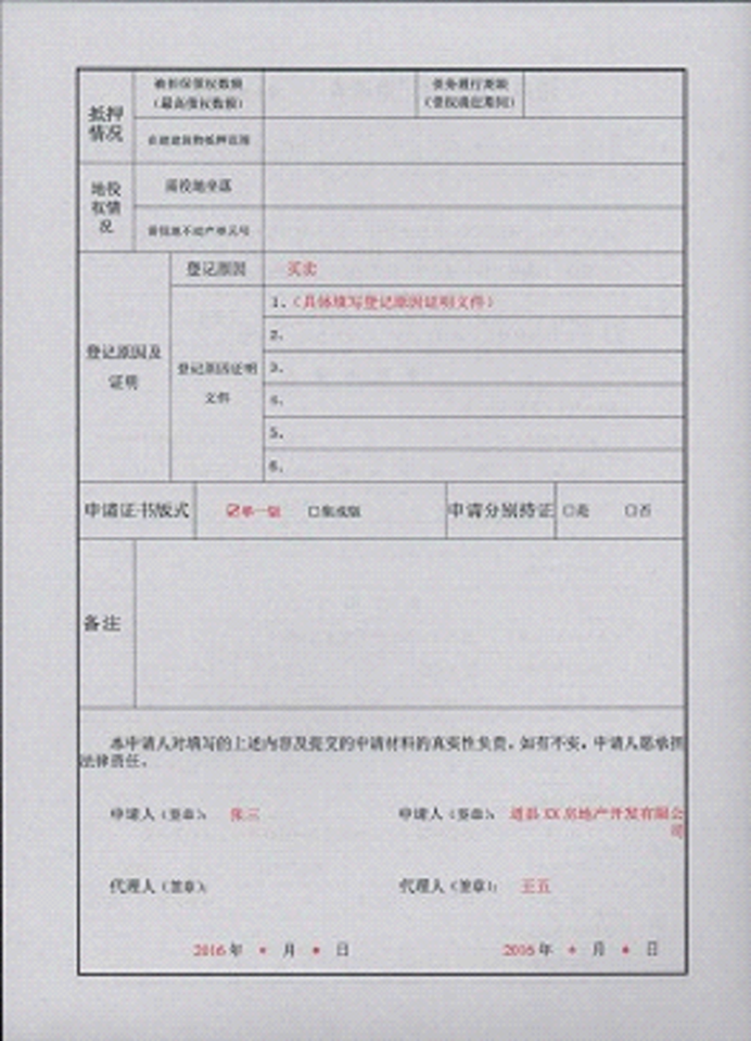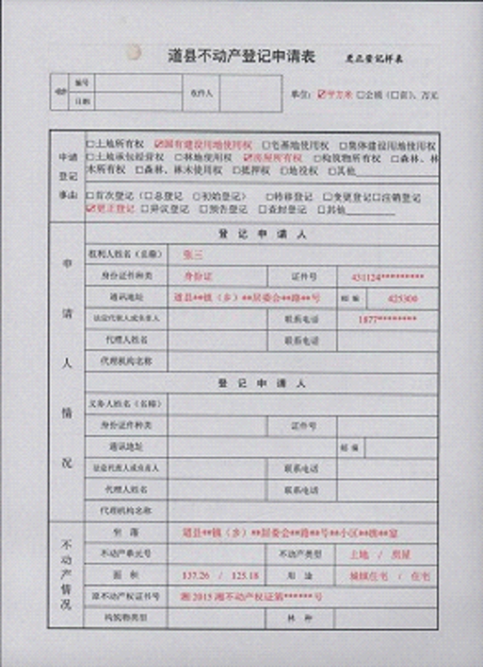 不动产登记申请书示范文本