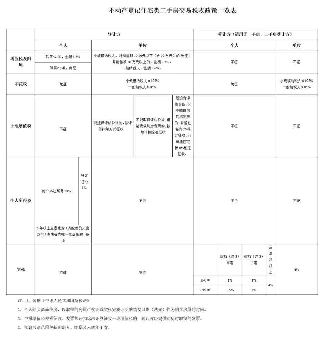 道县不动产登记二手房(住宅类、非住宅类)交易税收政策