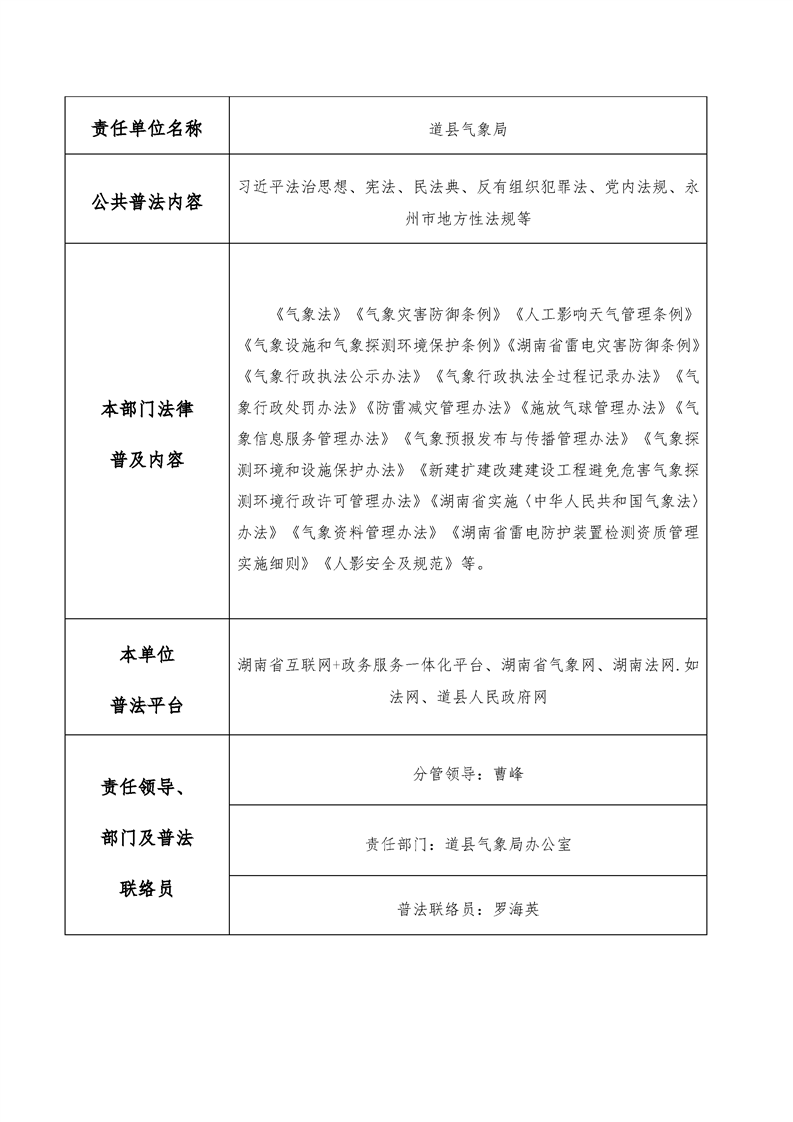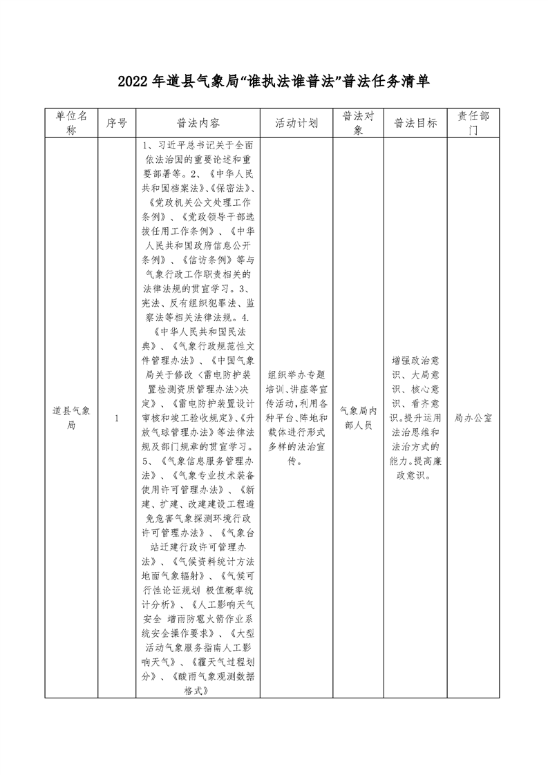 2022年道县气象局“谁执法谁普法”普法任务清单