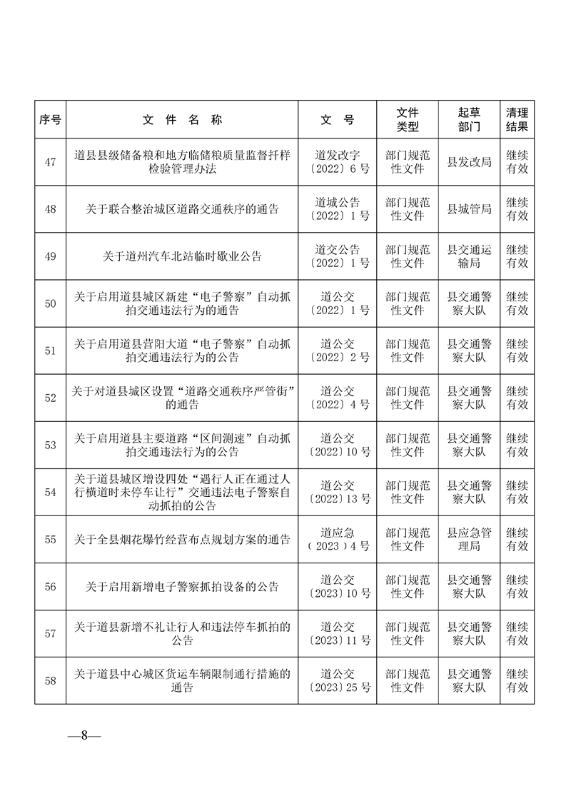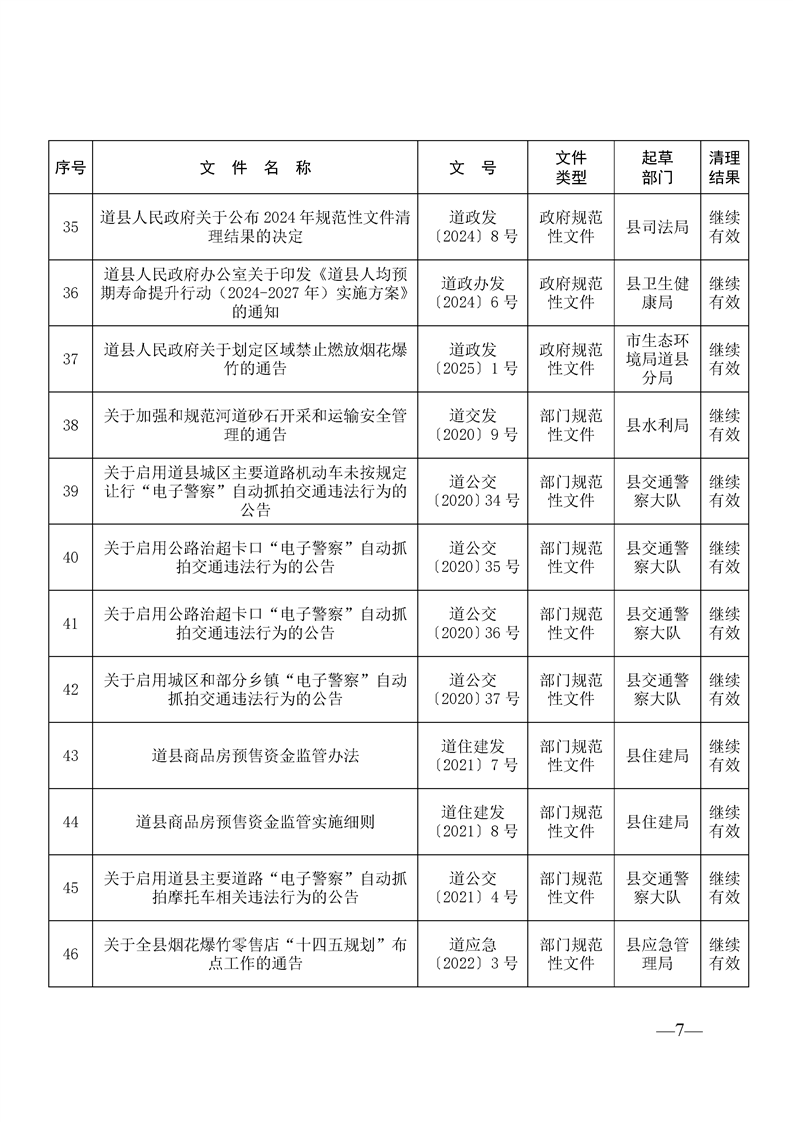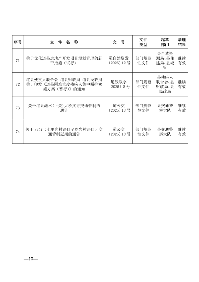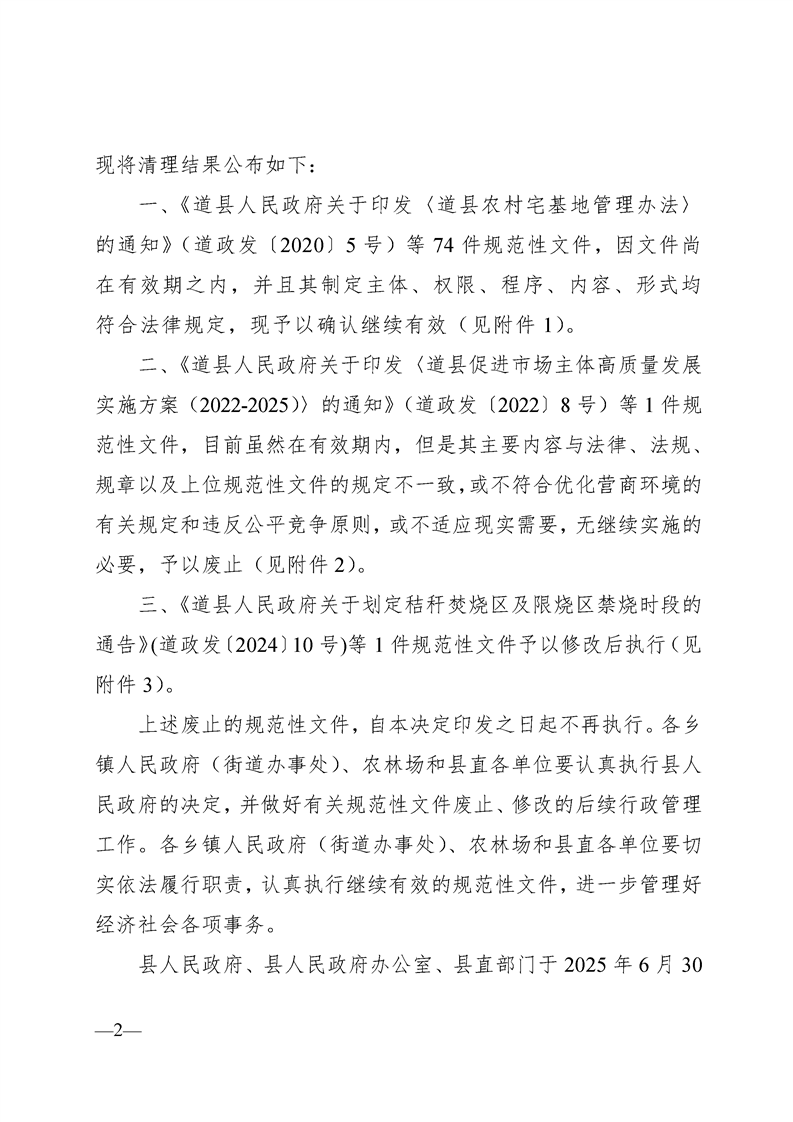 道县人民政府关于公布2025年规范性文件清理结果的决定