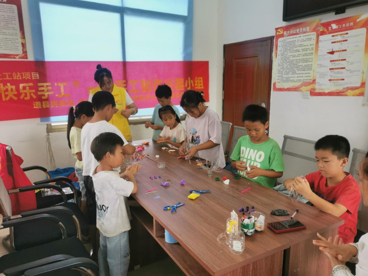 为丰富未成年人课余生活,引导其远离不良环境影响,在健康兴趣中实现全面发展,9月20日至29日,在道县民政局的指导下,道县长禾社会工作服务中心联合祥霖铺镇民政社工站,走进祥霖铺镇港草兴村,开展了为期五节课程的“童趣巧手,快乐手工”兴趣小组活动。