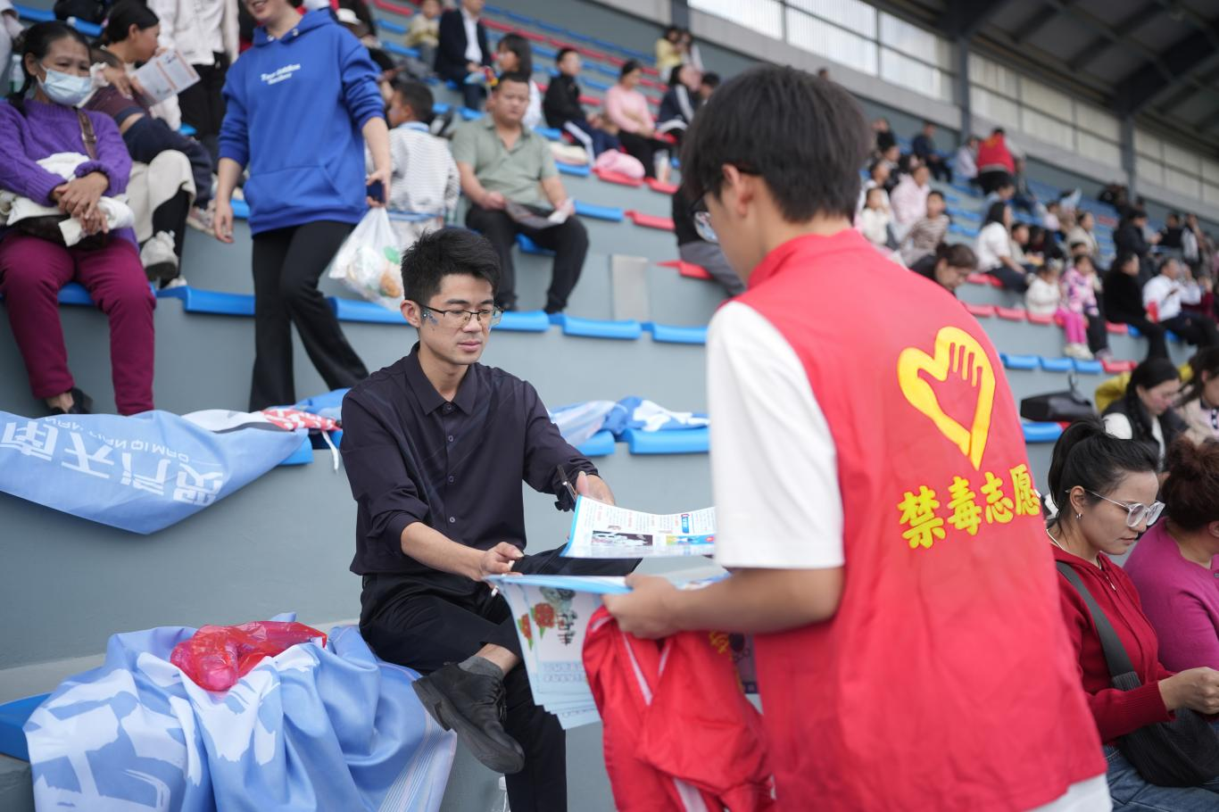 球赛开始前,禁毒民警与禁毒志愿者穿梭于球迷之间,发放禁毒宣传手册,并结合足球运动所需的健康体魄与团队精神,现场讲解毒品危害,强调“清醒看球,坚决拒毒”的理念。这种将宣教植入休闲场景的方式,吸引了众多球迷特别是青少年及家庭的关注,让防毒意识在热烈氛围中深入人心。