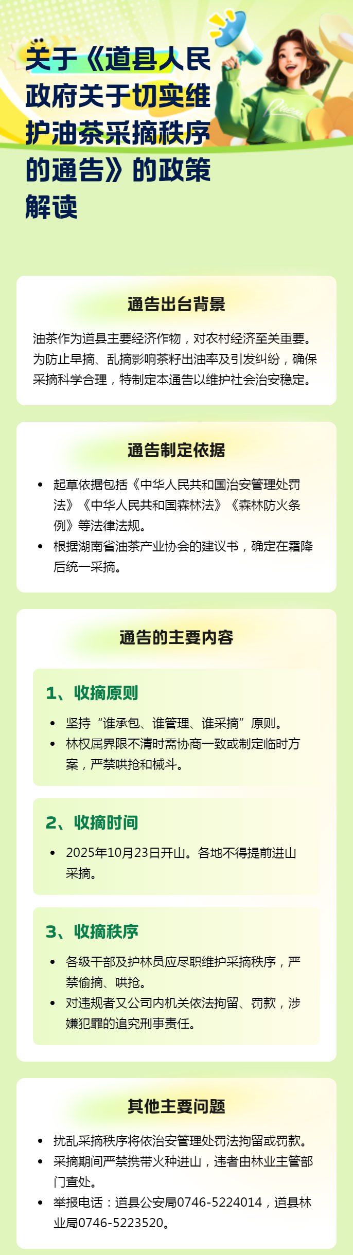 《道县人民政府关于切实维护油茶采摘秩序的通告》政策解读