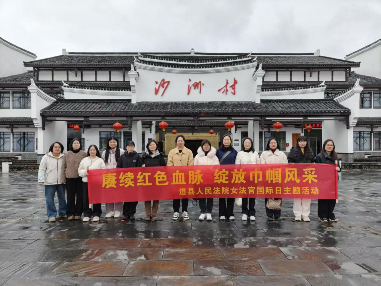 为迎接第五个“女法官国际日”,近日,道县法院组织女法官前往郴州汝城县文明瑶族乡沙洲村,走进“半条被子”故事发生地开展红色教育活动。
