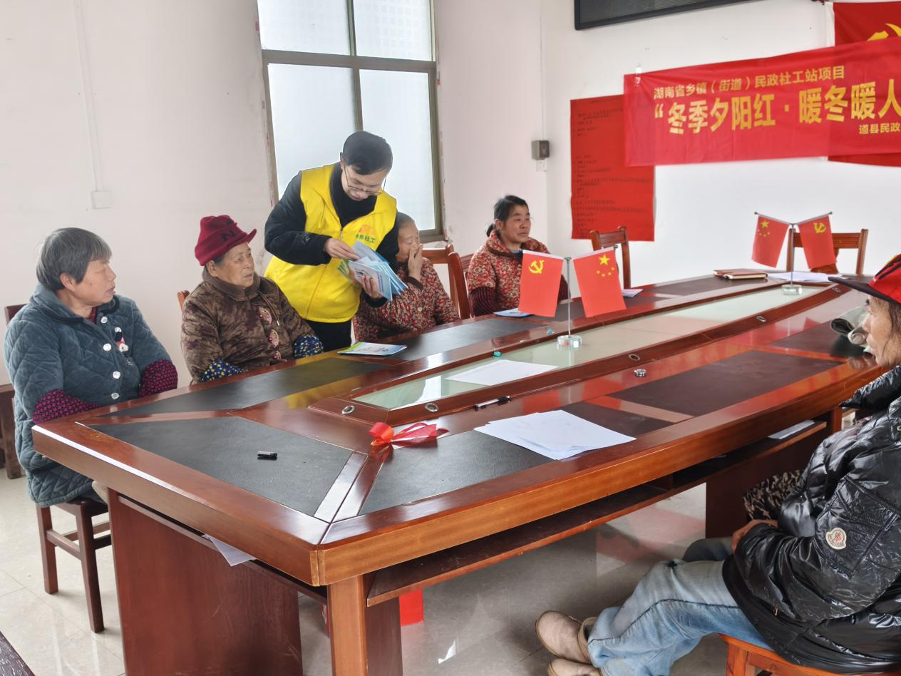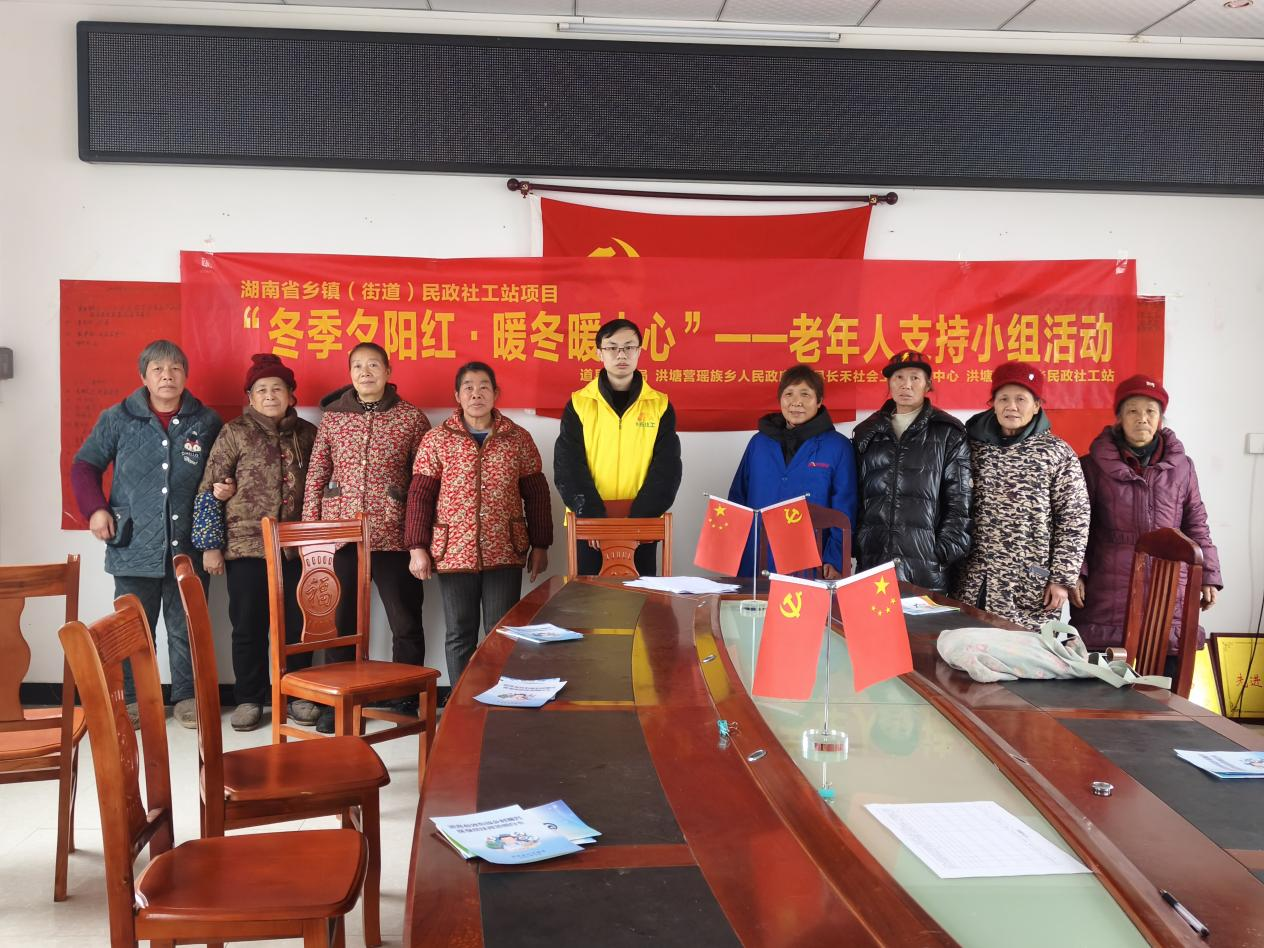 1月27日至2月4日,在道县民政局的指导下,道县长禾社会工作服务中心联合洪塘营瑶族乡人民政府、洪塘营瑶族乡民政社工站,在洪塘营乡湾子岭村开展“冬季夕阳红・暖冬暖人心”——老年人支持小组活动。活动旨在提升老年人的安全健康意识,加强对孤寡老人的身心关怀,为他们的晚年生活提供有力支持。