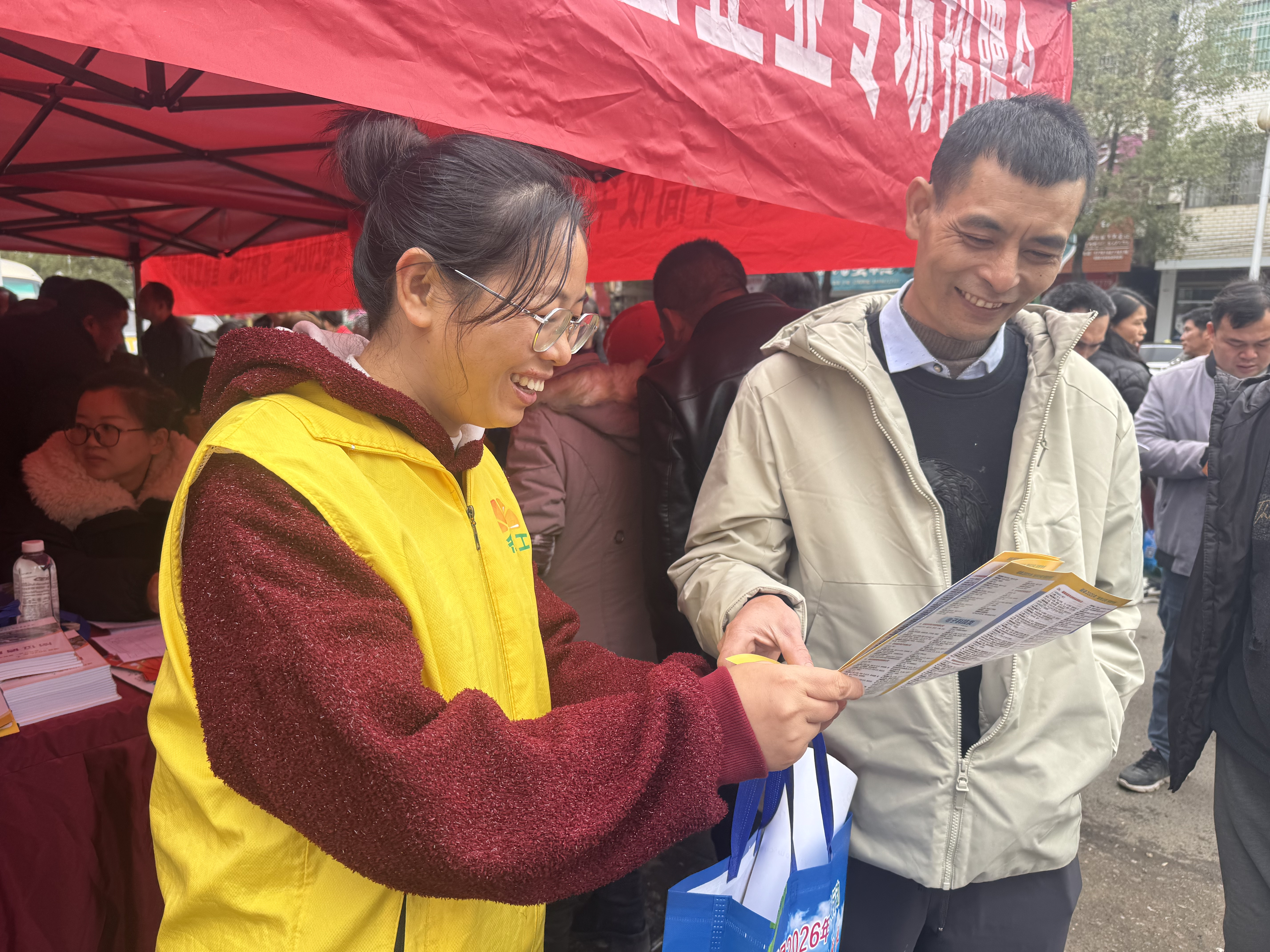 2月25日,道县祥霖铺镇综治中心联合县人社局等多部门,在镇集市中心开展“春风行动”暨法治宣传教育活动,以“送岗位、送政策、送服务、送保障”模式,助力求职者就业和企业用工对接。