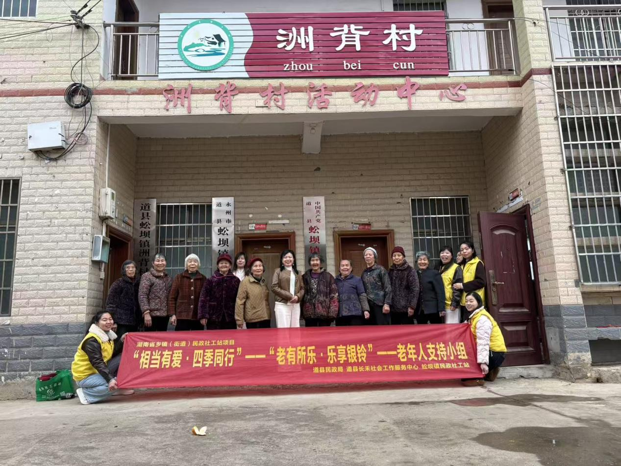 3月18日至4月8日,在道县民政局的精心指导下,道县长禾社会工作服务中心联合蚣坝镇民政社工站在洲背村开展“湘当有爱·四季同行——老有所乐·乐享银龄”老年人支持小组活动。本次活动以健康陪伴、文娱增能、情感互助、安全守护为核心,为辖区老年人搭建交流互动平台,助力长者乐享幸福银龄生活。