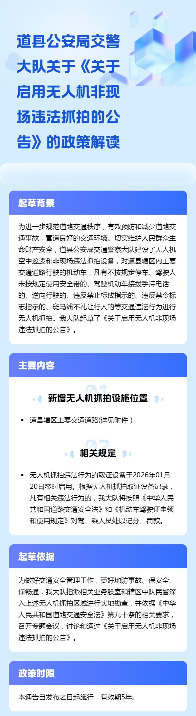 道县公安局交警大队关于《关于启用新二中路口和谷源学校路口电子警察抓拍设备的公告》的政策解读